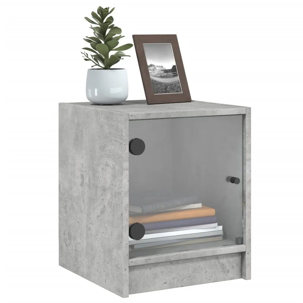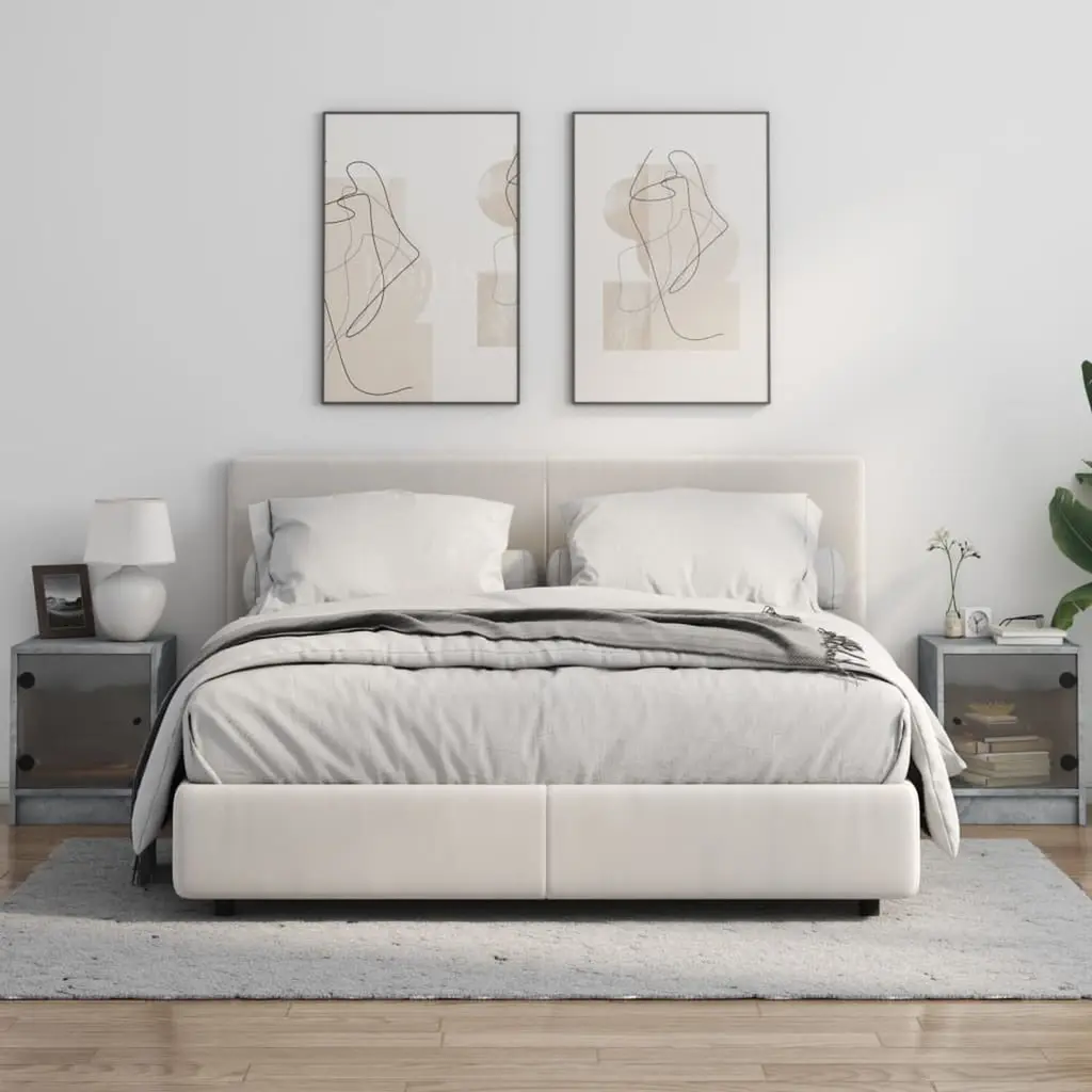 Vidaxl Bedside Cabinet Set Of 2 Concrete Gray Engineered Wood, Glass