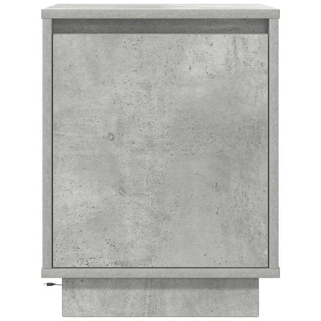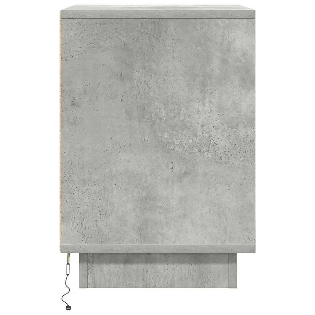 This modern bedside cabinet is unique with its RGB LED lights and loads of storage, blending style and utility perfectly. The chic concrete grey finish turns any bedroom into a trendy retreat while keeping your essentials organized and close at hand. Built-In RGB LED Lights: The integrated LED strip lights create a soft, ambient glow, perfect for reading at night or setting a cozy vibe. Ample Storage Space: With a spacious drawer and open shelf, this bedside cabinet keeps your items tidy and easy to reach. Stylish and Modern Design: The sleek lines and matte finish add a touch of elegance, making it versatile enough to match any bedroom style. User-Friendly Features: The remote control for the LED lights lets you change settings without getting out of bed. Durable and Reliable Construction: Made from high-quality engineered wood, it's built for the long haul and can hold up to 132.3 lb, making it both functional and sturdy.