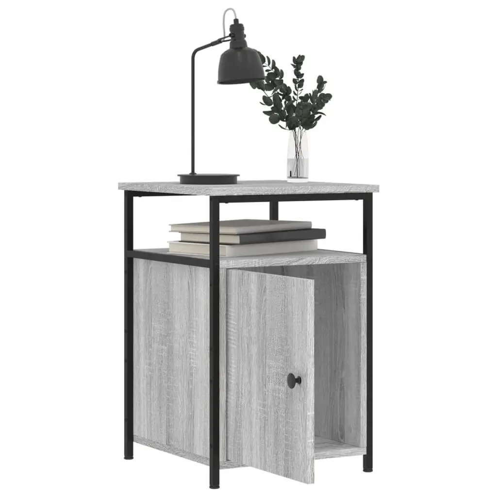 Vidaxl Bedside Cabinet Set Of 2 Gray Sonoma Engineered Wood, Iron