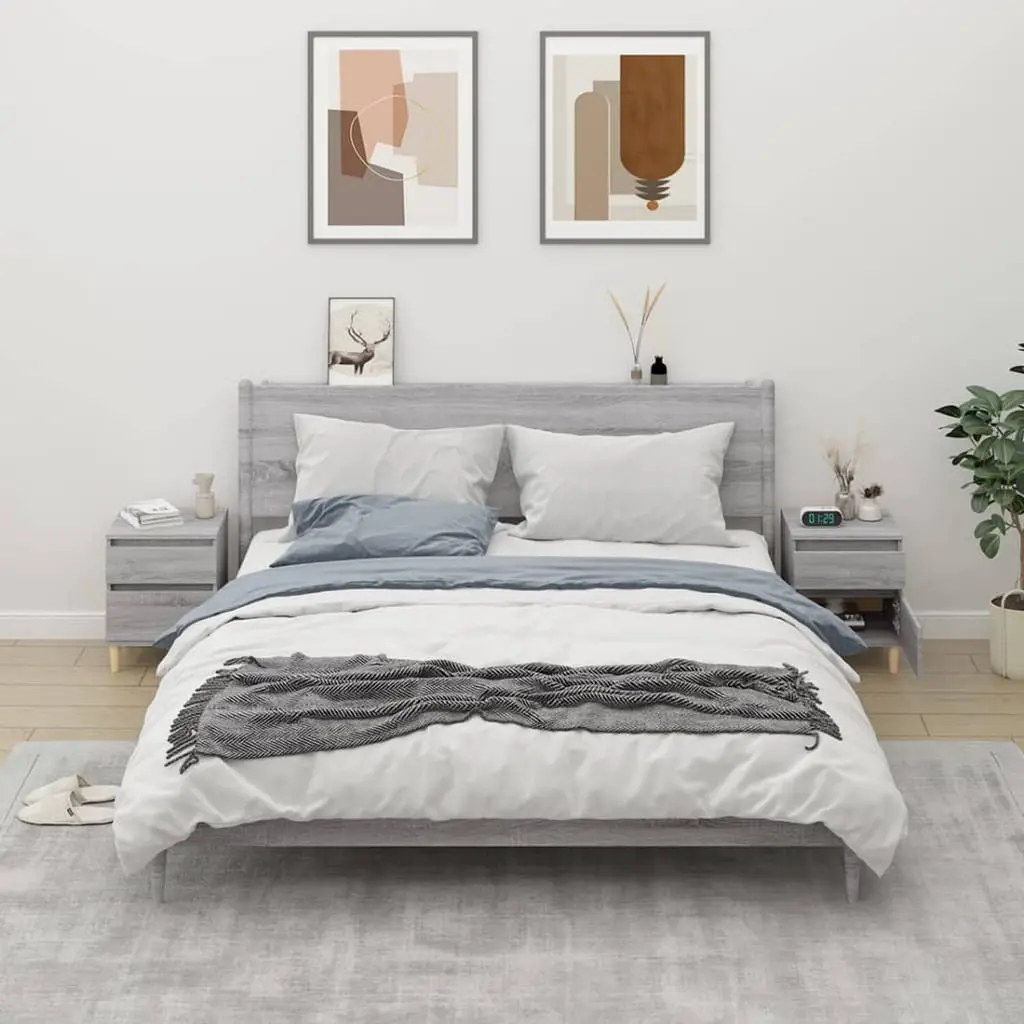 Vidaxl Bedside Cabinet Set Of 2 Grey Sonoma