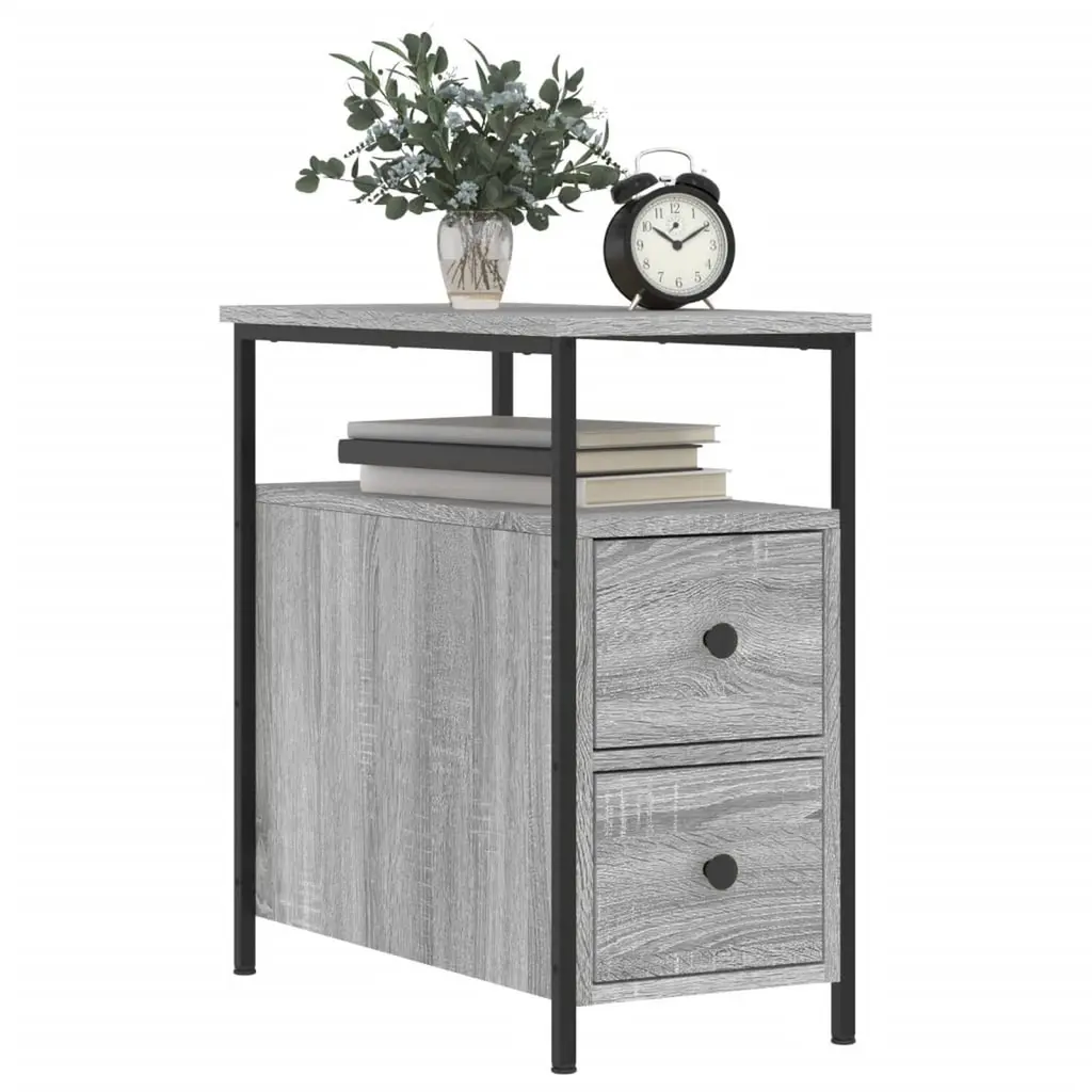 These two bedside cabinets blend a contemporary design that fits effortlessly with both modern and traditional bedroom vibes. Finished in Grey Sonoma, they're perfect for keeping your nighttime essentials—like books and lamps—close at hand while looking great in your space. Ample Storage: With two spacious drawers, this bedside cabinet provides ample storage for your essentials, keeping your space clutter-free and organized. Each drawer is thoughtfully designed, letting you easily store everything from books, chargers to other nighttime necessities.Height-Adjustable: The innovative adjustable feet make it easy to ensure stability on uneven floors, letting you customize the height of your cabinets for optimal convenience. This thoughtful feature guarantees that your cabinets will remain level and stable regardless of the floor’s surface.Durable Material: Crafted from high-quality engineered wood, this modern cabinet ensures durability and longevity, perfect for daily use without sacrificing style or function. The matte finish not only adds to its aesthetic value but also protects the surface from wear, making it a low-maintenance addition to your home.Stylish Versatility: Its smooth texture and compact size make this bedside cabinet suitable for various uses beyond the bedroom, including as a stylish side table in the living room or a convenient plant stand. The versatile design makes it an ideal accessory for any room.Modern Design: Designed with clean lines and a contemporary aesthetic, this Grey Sonoma bedside cabinet enhances the decor of any room, creating a chic and inviting atmosphere. The polished knobs add an elegant touch, ensuring that it stands out without overwhelming your space.