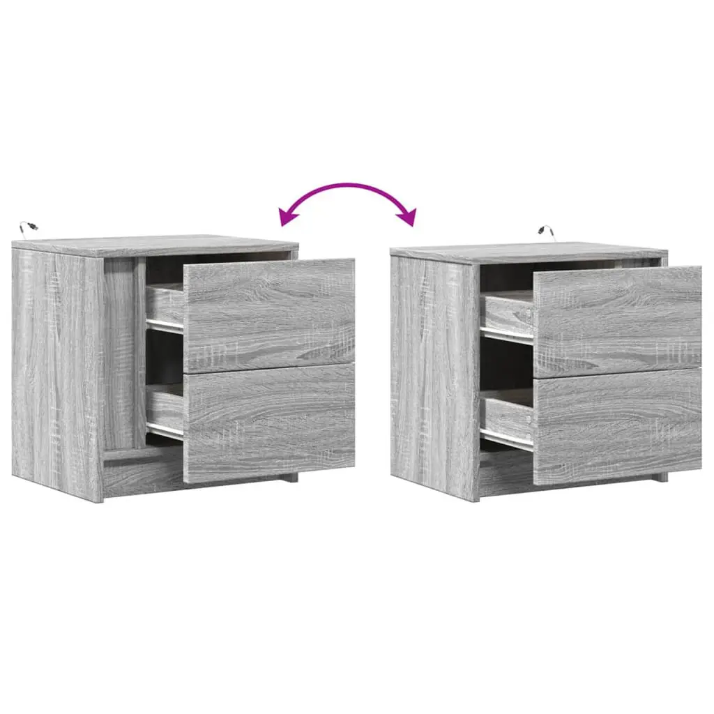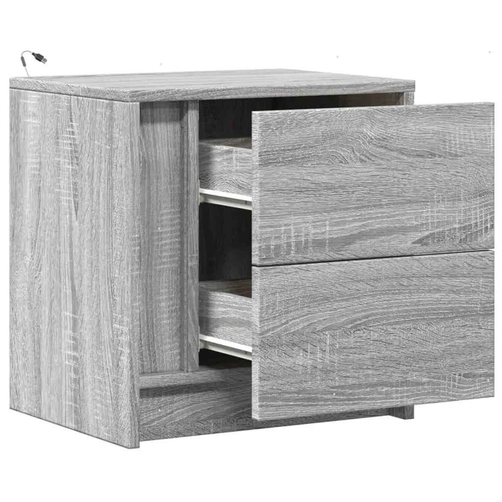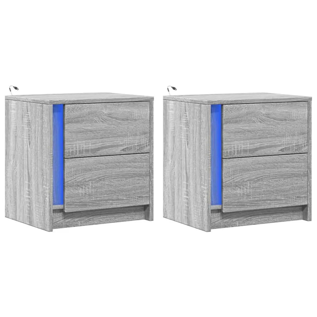 This Grey Sonoma Bedside Cabinet Set is all about practicality and modern flair, perfect for your bedroom or living room. With its sleek design and integrated LED lights, it's not just about storage; it also boosts your room's style and works well with different decor. Ample Storage: These cabinets have a solid drawer, perfect for stashing books, glasses, and gadgets. They keep your essentials tidy and out of sight, giving you more floor space.Built-In RGB LED Lighting: The multi-colored LED lights add versatility. Whether you want a soft light for late-night reading or bright colors to set the mood, this feature enhances how your space looks.Modern Style: With slick lines and a matte grey finish, these cabinets bring a modern vibe. Their smooth surface and simple design make them a stylish addition to contemporary or minimalist setups.Quality Construction: Made from top-quality engineered wood, these cabinets are built to last and stay looking good over time.Versatile Use: Great for bedrooms and living areas, these cabinets serve multiple purposes. Use them as traditional side tables or to display decorative items, adding extra surfaces when you need them.