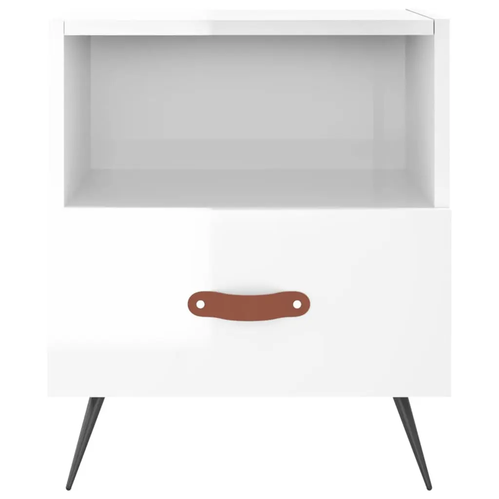 This bedside cabinet set is all about modern elegance, sporting a sleek high-gloss white finish that reflects light beautifully, giving life to any bedroom or living room. With its simple lines and minimalist design, it's a stylish piece that goes well with just about any décor, blending function and flair effortlessly. Stylish Design: The high-gloss white finish brings a sleek and polished look, reflecting contemporary trends and illuminating your living spaces. The smooth surface enhances the overall decor, making it a striking addition to any room.Spacious Storage: Equipped with two traditional drawers, this cabinet ensures ample space for storing personal items, books, and nighttime necessities, keeping your area organized and clutter-free. Each drawer glides smoothly, thanks to the well-crafted runners.Quality Build: Made from engineered wood paired with robust iron legs, this piece offers stability and durability. Its construction is geared towards long-lasting use, making it a valuable addition to your home furniture collection.Multipurpose Use: Suitable for use as a bedside table or a side cabinet in the living room, this piece caters to various needs and preferences. It seamlessly fits into different rooms, making it an adaptable furniture solution.Easy Maintenance: The high-gloss finish allows for effortless cleaning, requiring only a damp cloth for maintenance. This ensures that your cabinet retains its immaculate appearance for years to come.