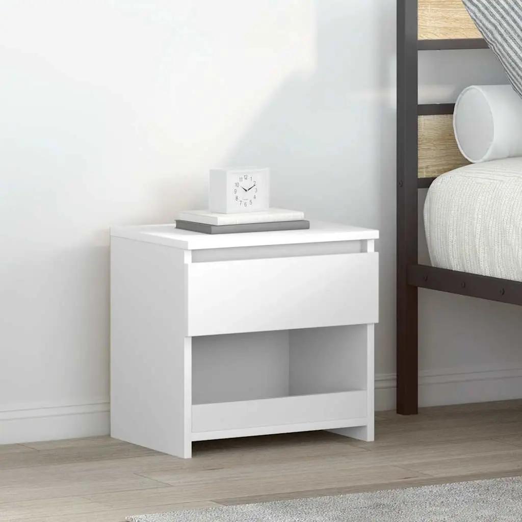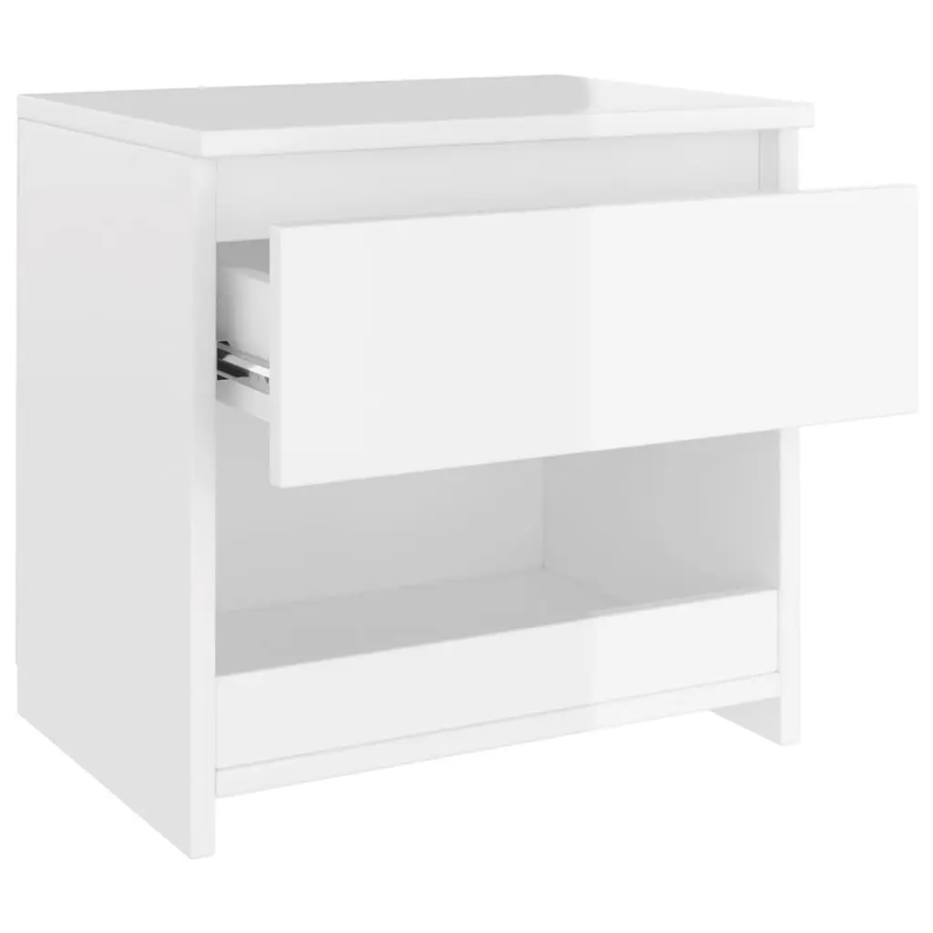 This bedside cabinet set offers a stylish solution for your bedroom or living room decor. It's sleek and chic, perfect for stashing away personal items, lamps, or books. Its high gloss white finish gives any space an instant lift, making it a perfect match for both modern and traditional interiors. Ample Storage: Each cabinet has a spacious drawer for your bedtime must-haves like books, glasses, or devices, keeping your space neat. This thoughtful design maximizes the available space without compromising on style.Minimalistic Design: The clean lines and simple shapes of the cabinets reflect a modern design vibe, ensuring they fit with various decor styles. A tidy, minimalist look enhances your room's atmosphere and promotes a calm environment.Modern Finish: With a high-gloss surface, these cabinets don’t just look good—they add a touch of elegance by reflecting light. Plus, they're easy to maintain, so keeping them looking fresh is a breeze.Durable Material: Made from engineered wood, these cabinets are tough enough for everyday use, providing solid support. The quality materials help keep your bedside tables looking fabulous and functional for years.Flexible Usage: Designed for indoors, this set can fit into bedrooms, living rooms, or guest spaces with ease, adapting to your home layout. They’re stylish and functional for all your storage needs.
