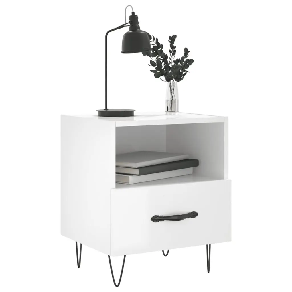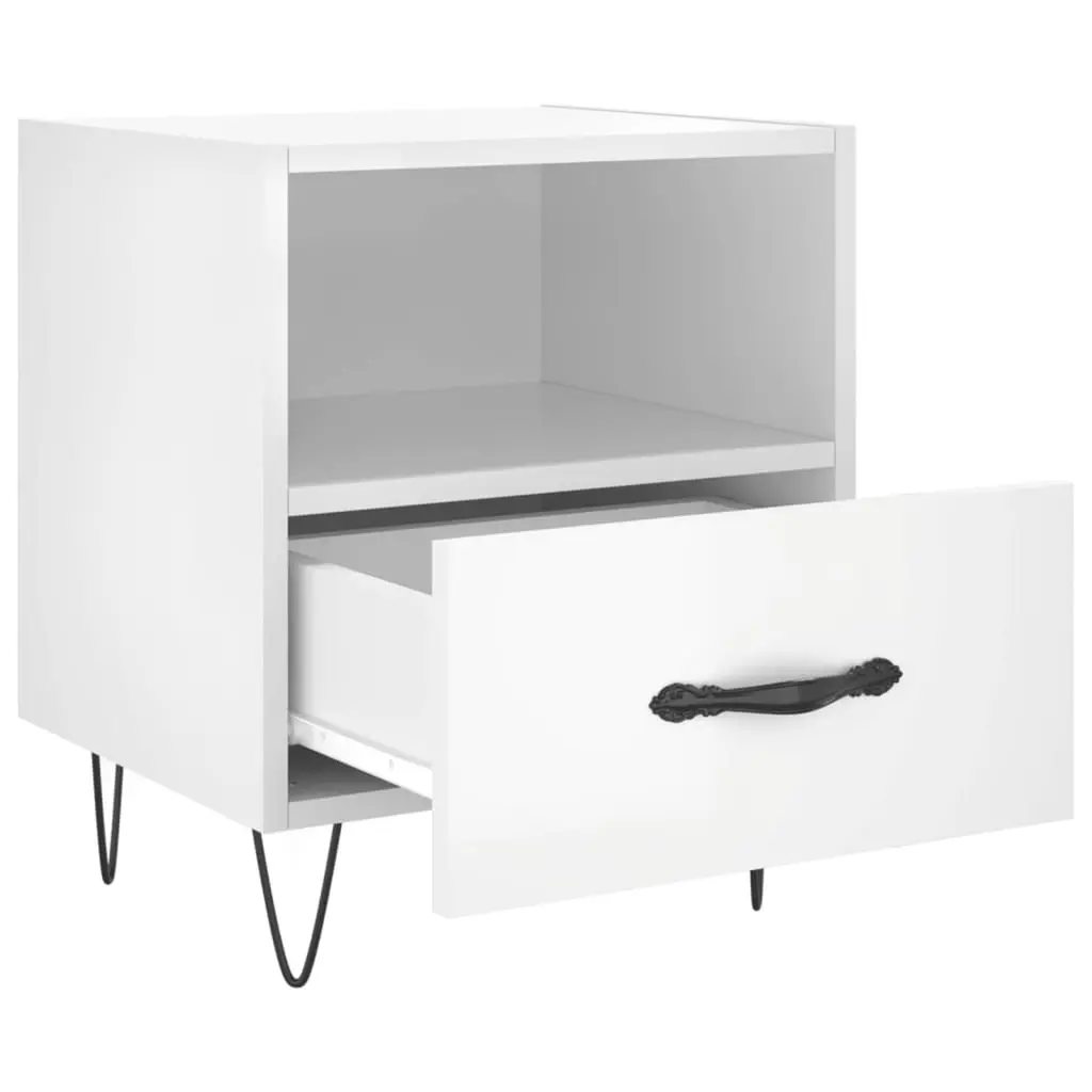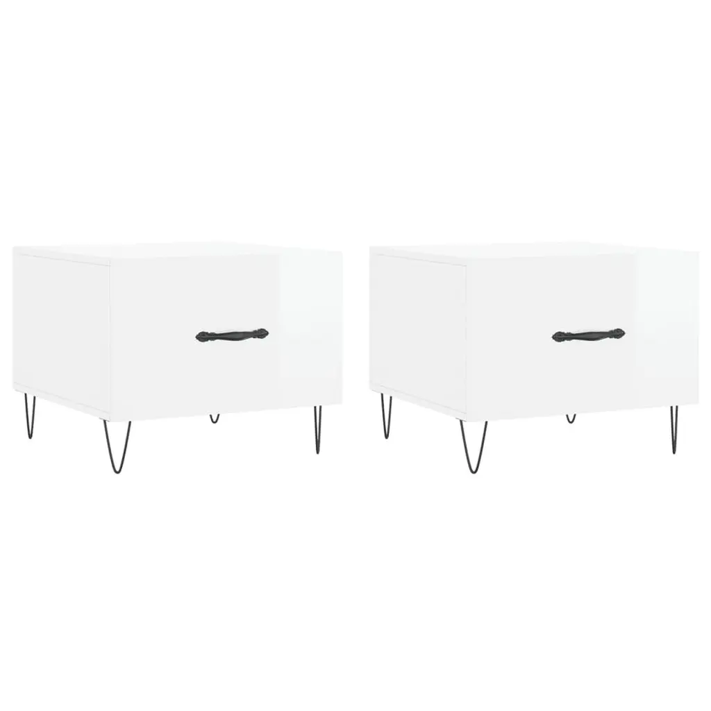 Vidaxl Bedside Cabinet Set Of 2 High Gloss White Engineered Wood, Iron