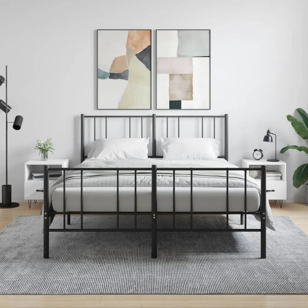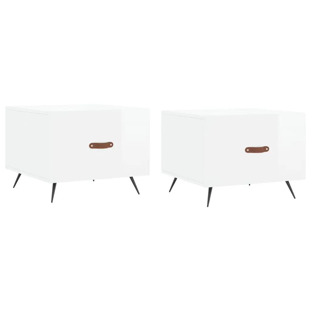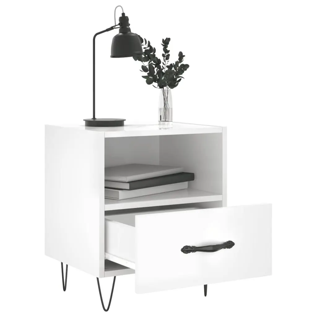 Vidaxl Bedside Cabinet Set Of 2 High Gloss White Engineered Wood, Iron