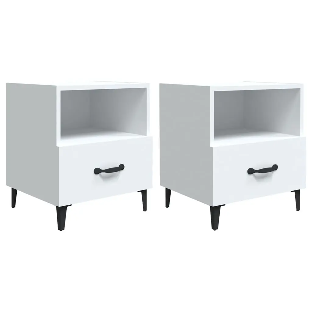 Vidaxl Bedside Cabinet Set Of 2 High Gloss White Engineered Wood, Iron