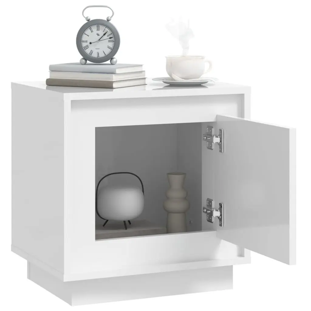 This set of bedside cabinets, sporting a modern high gloss white finish, is a lovely addition to any bedroom or living space, blending elegance with practicality. Built from tough engineered wood, each cabinet offers plenty of storage space while also making your room look stylish with its shiny surface. Plenty of Storage: Each cabinet has two spacious compartments for books, personal items, or bedtime essentials, so you can keep everything you need close by for a good night's sleep.Glossy Finish: The shiny surface not only looks great but is easy to maintain, needing just a quick wipe with a damp cloth, which is perfect for busy lives.Modern Design: With clean lines and a minimalist look, these cabinets fit in with any decor, making them ideal for contemporary, transitional, or eclectic styles.Reversible Doors: The clever design allows you to choose how you want the doors to open, providing flexibility based on your needs.Durable Craftsmanship: Made from engineered wood, these cabinets are built to last, giving you a stylish and reliable storage solution over time.