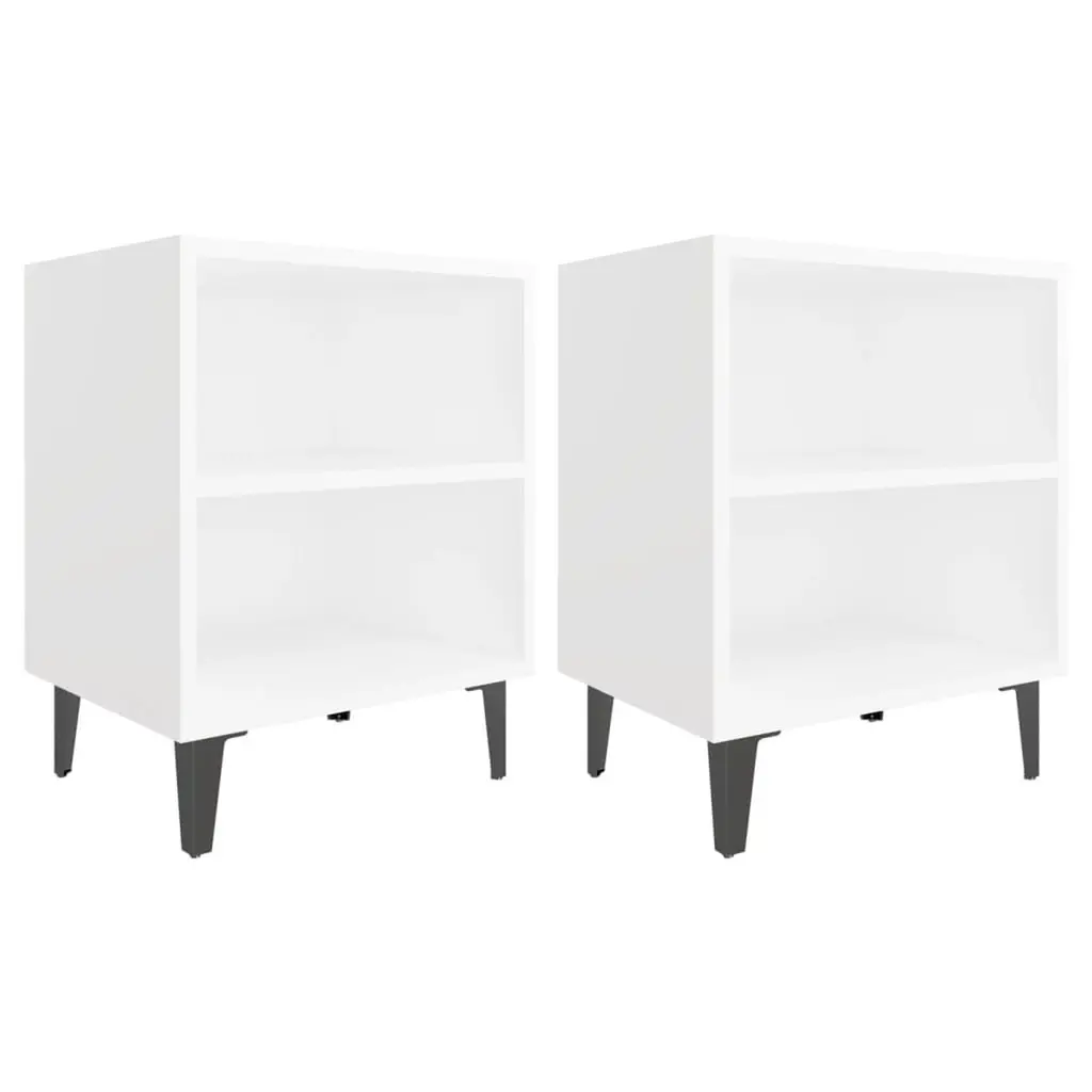 Vidaxl Bedside Cabinet Set Of 2 High Gloss White Engineered Wood Medium