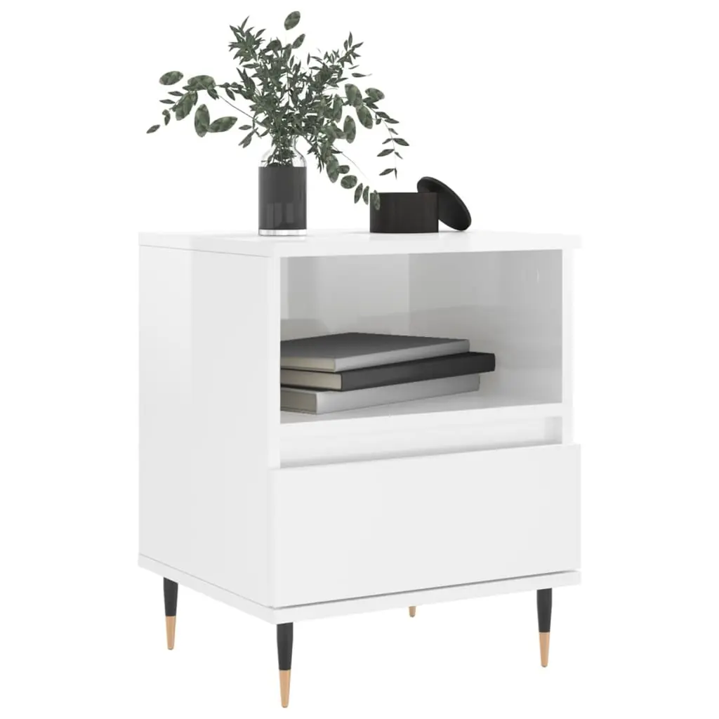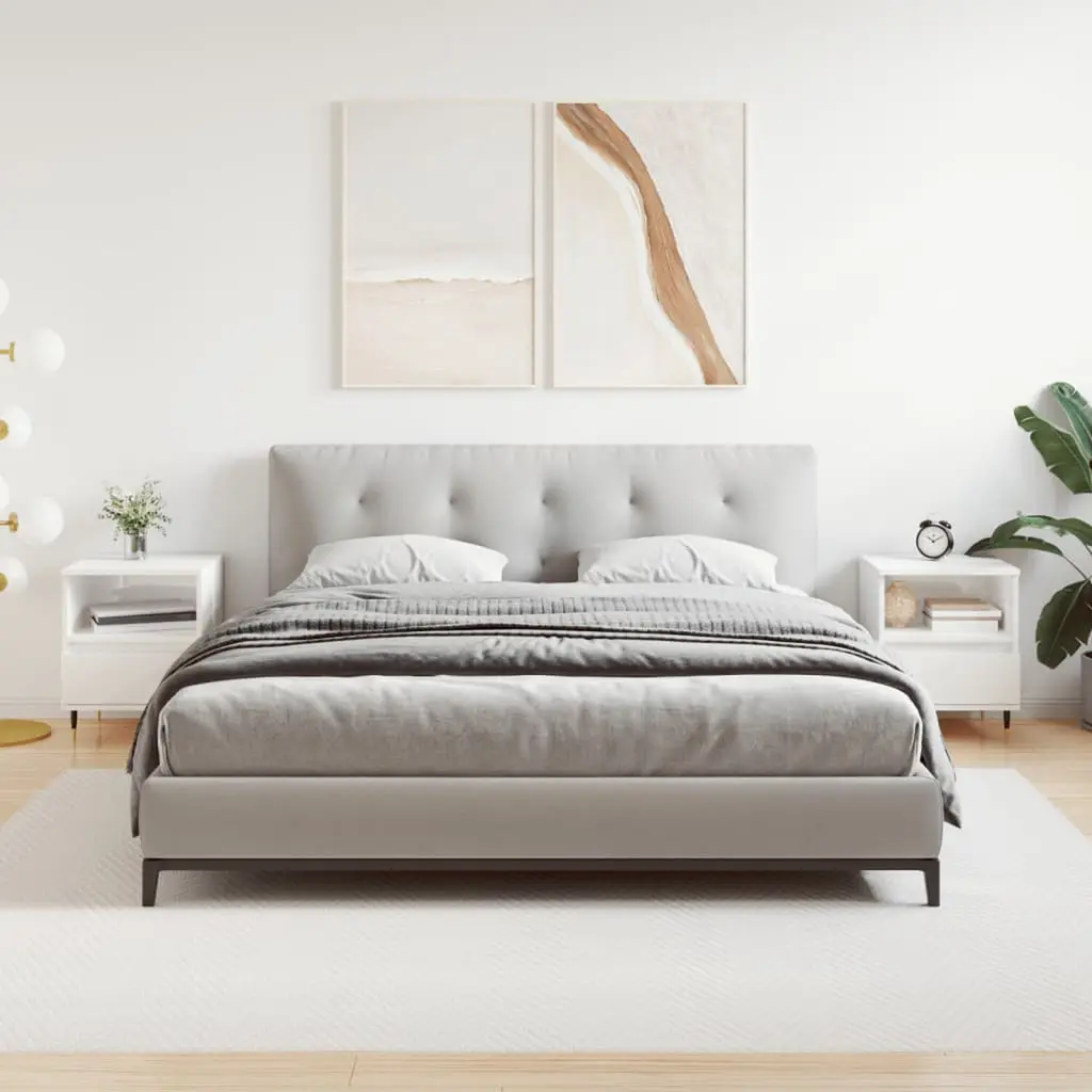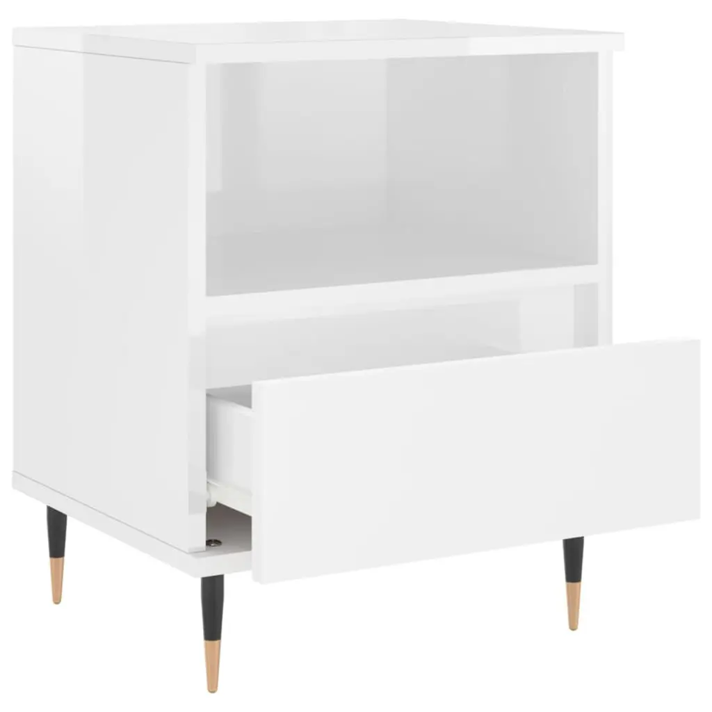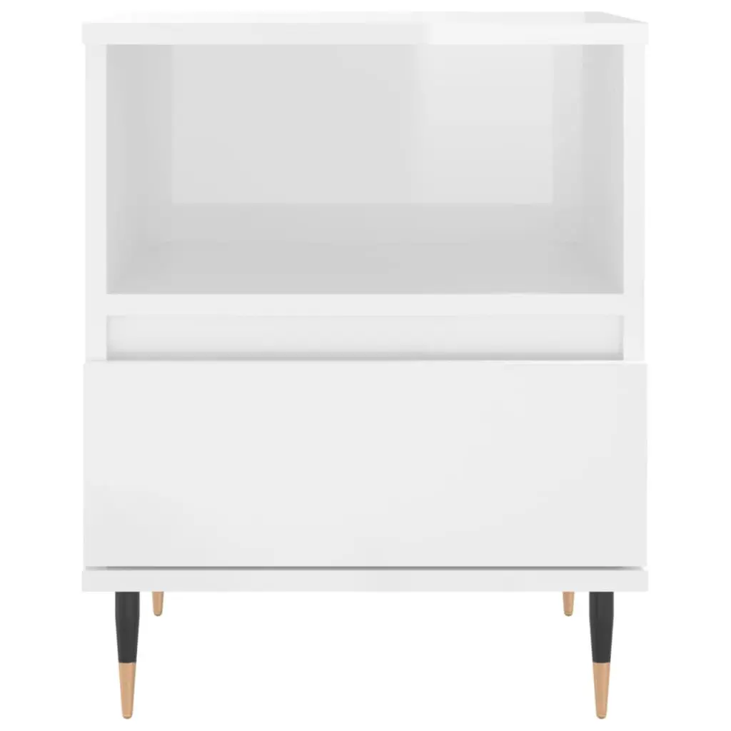 Vidaxl Bedside Cabinet Set Of 2 High Gloss White Engineered Wood, Metal