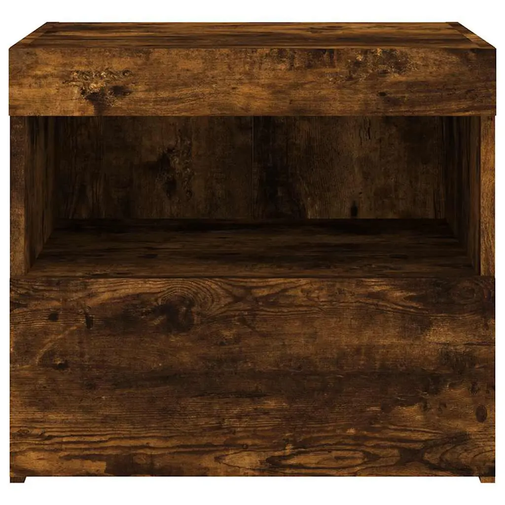 This bedside cabinet mixes practicality with modern looks, perfect for sprucing up your bedroom. Made from engineered wood, its smart smoked oak finish boosts the decor while giving you great storage for your must-haves. Built-In Smart Lighting: The LED lights add a lively twist, perfect for setting a mood. You can change the colors and patterns with a remote, making your room feel fresh.Ample Storage Space: The classic drawer gives you loads of room for stashing away books, glasses, or other bedtime items. It's a key part of your bedroom that’s both useful and stylish.Quality Material: Made from durable engineered wood, this cabinet is ready for daily use while looking great. Plus, it’s moisture-resistant, so it stays in good shape for ages.Versatile Design: With a modern vibe and smooth finish, it fits all sorts of bedroom styles, from sleek to traditional. It’s not just furniture; it’s a style statement.Easy Assembly: This cabinet’s simple to put together with clear instructions, needing just a screwdriver and a buddy to help out, making it a breeze to set up. The product comes with a USB connector, but you won't find the certified 5V USB power source in the box.