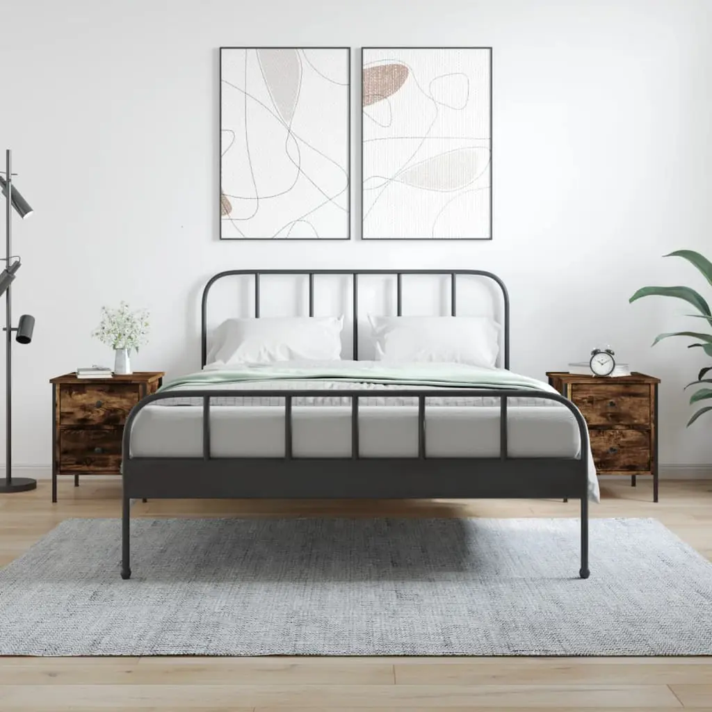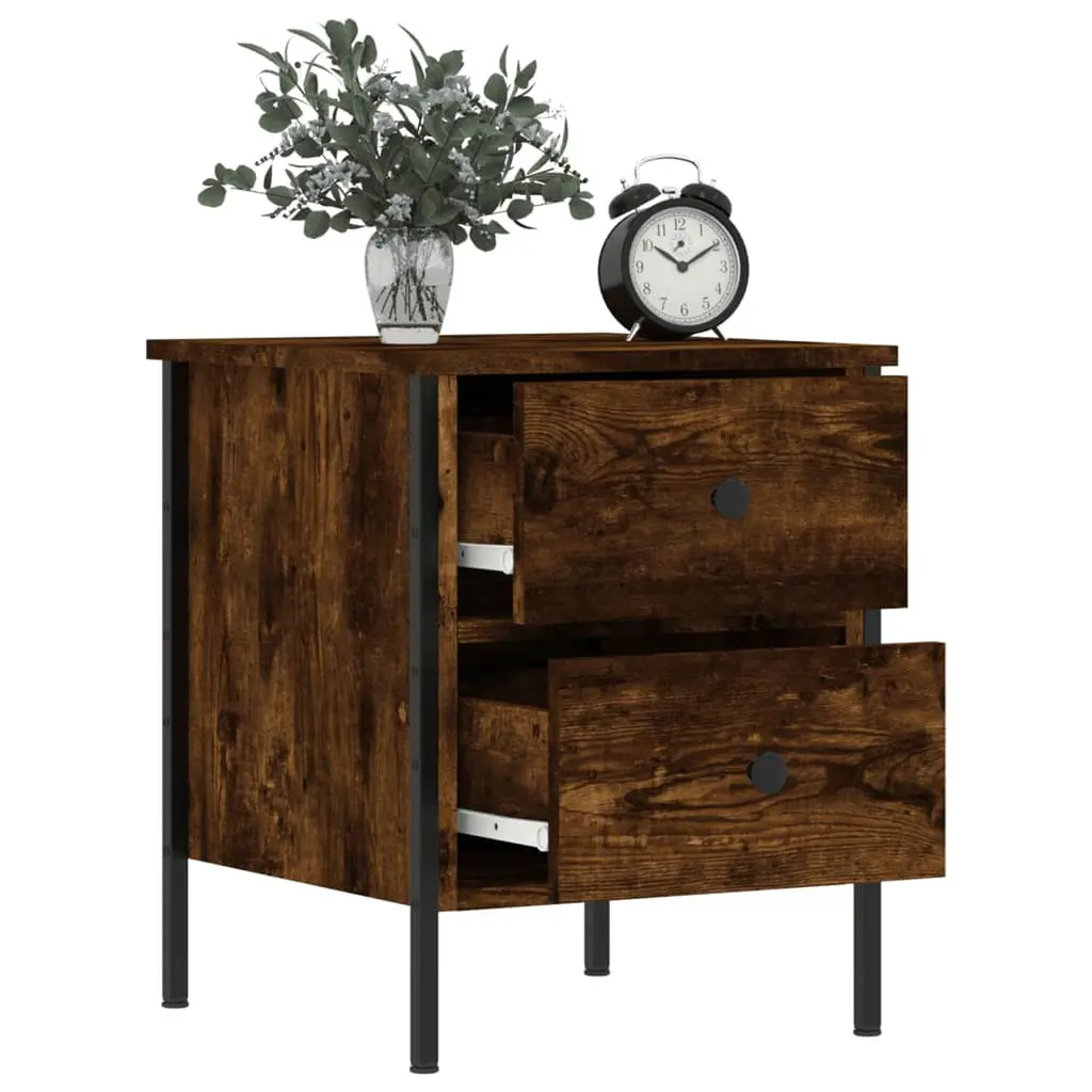 Vidaxl Bedside Cabinet Set Of 2 Smoked Oak Engineered Wood, Iron