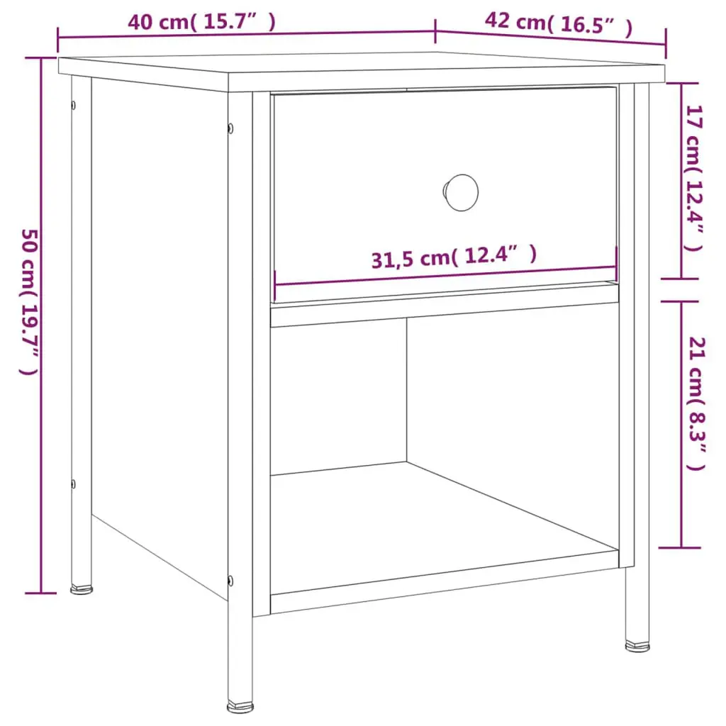 Vidaxl Bedside Cabinet Set Of 2 Smoked Oak Engineered Wood, Iron