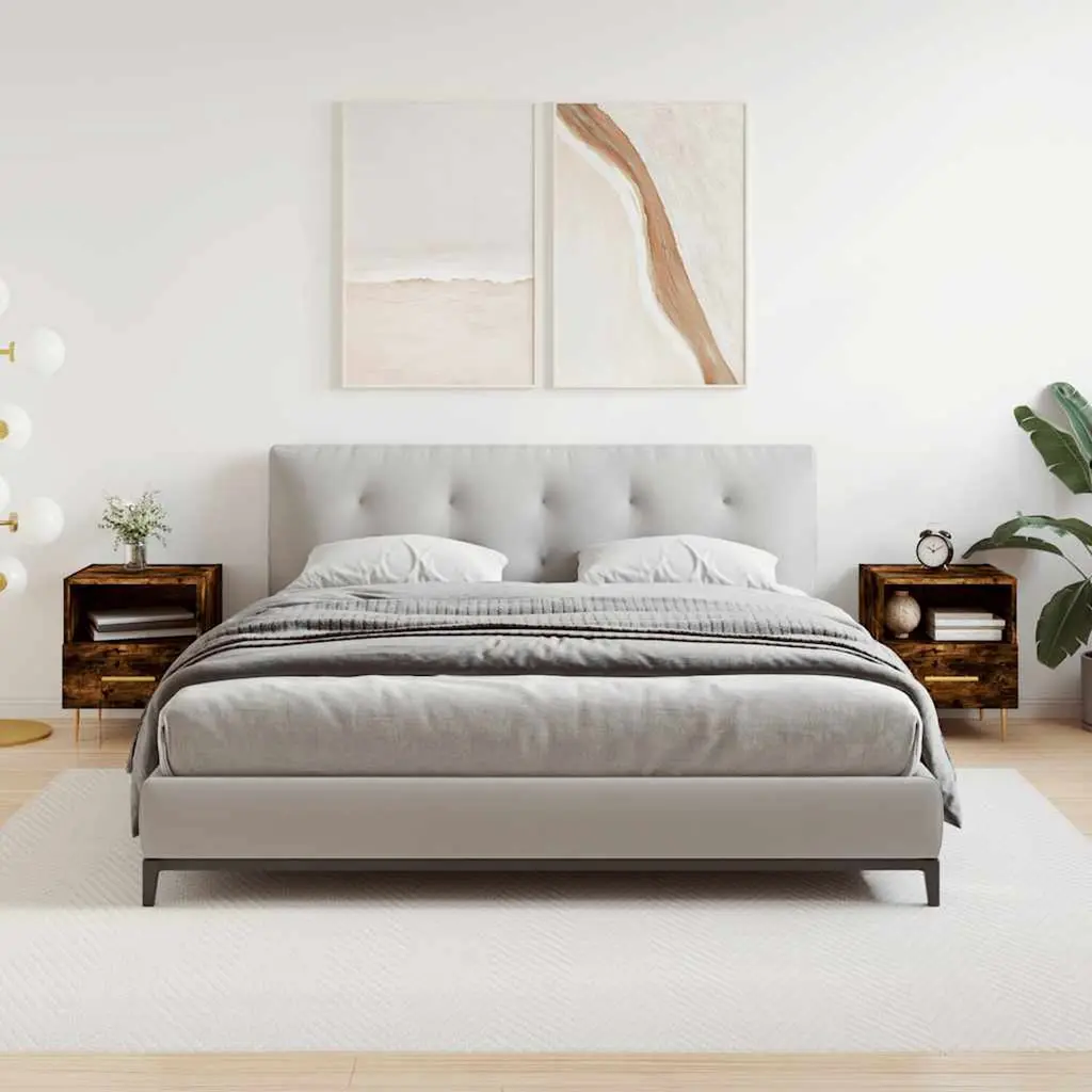 Vidaxl Bedside Cabinet Set Of 2 Smoked Oak Engineered Wood, Iron Medium