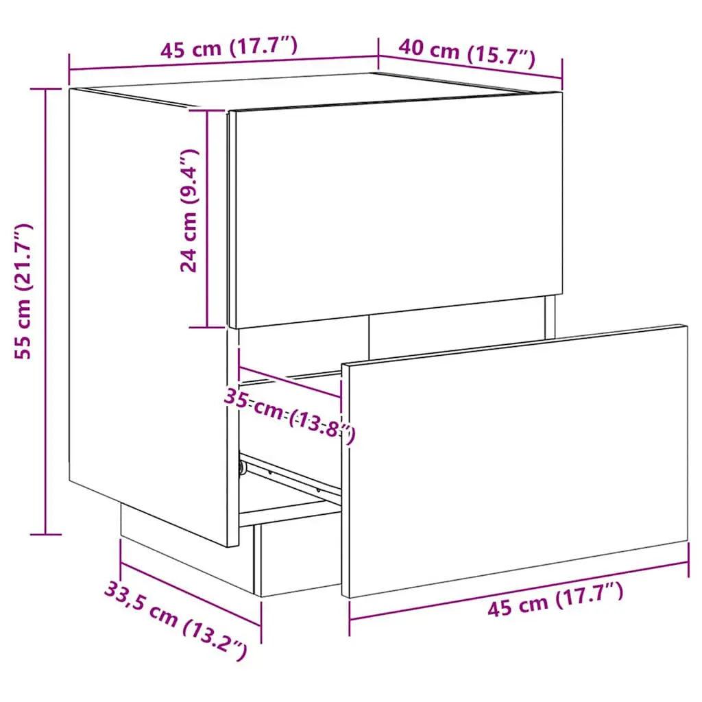 This modern bedside cabinet set is a fantastic mix of style and utility, making it a must-have for any bedroom. It features a sleek smoked oak finish, fitting right in with various interior styles while offering practical storage next to your bed. Ample Storage: The cabinets have plenty of space, perfect for books, reading glasses, or a lamp, keeping your area neat and tidy.Integrated Lighting: Featuring LED lights, these cabinets provide useful light and a nice vibe, making your nights more enjoyable. The controls are remote-operated for your convenience.Stylish Design: Finished in a smoked oak color, the cabinets look stunning and elevate your room. The matte surface keeps it modern and easy to maintain.Durable Material: Made from engineered wood, these cabinets withstand moisture well, ensuring they last for years with daily use.Easy Assembly: They’re a breeze to put together, needing just a screwdriver. Less hassle means you can enjoy your new furniture sooner. The product comes with a USB connector, but you won't find the certified 5V USB power source in the box.