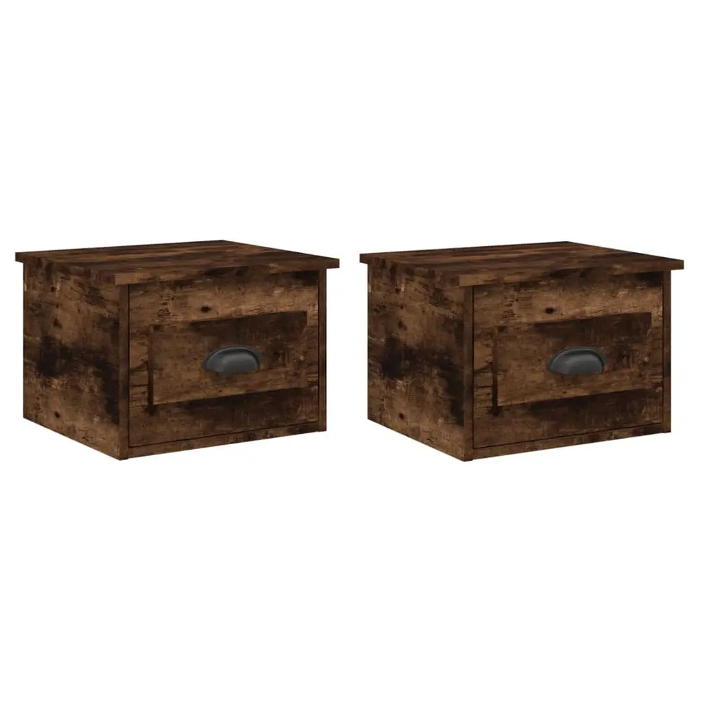 Vidaxl Bedside Cabinet Set Of 2 Smoked Oak Engineered Wood Medium