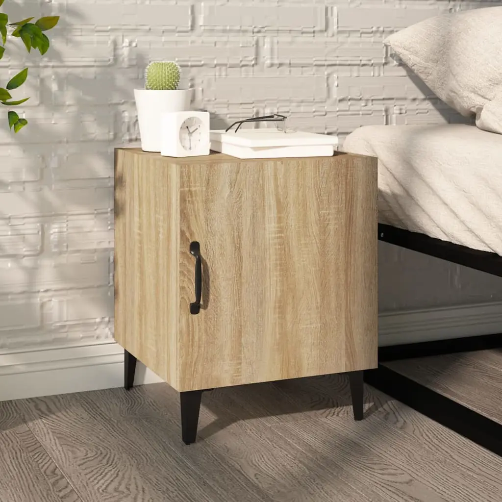 Vidaxl Bedside Cabinet Set Of 2 Sonoma Oak Engineered Wood, Metal Medium