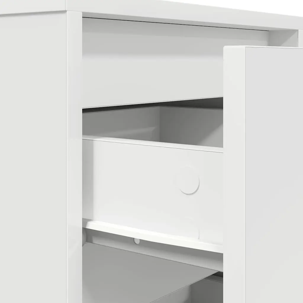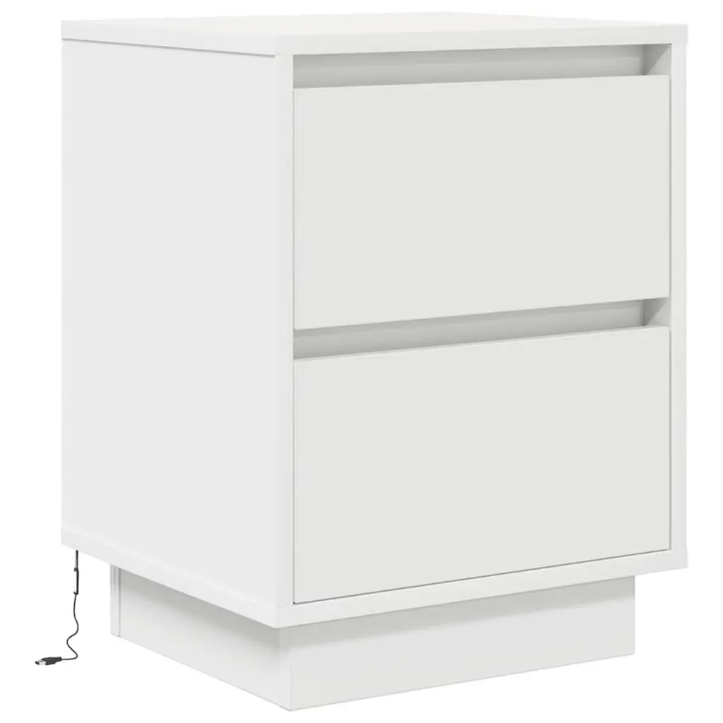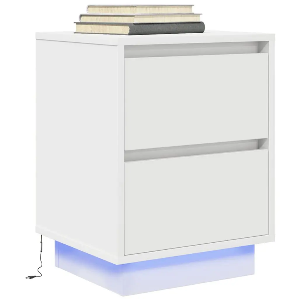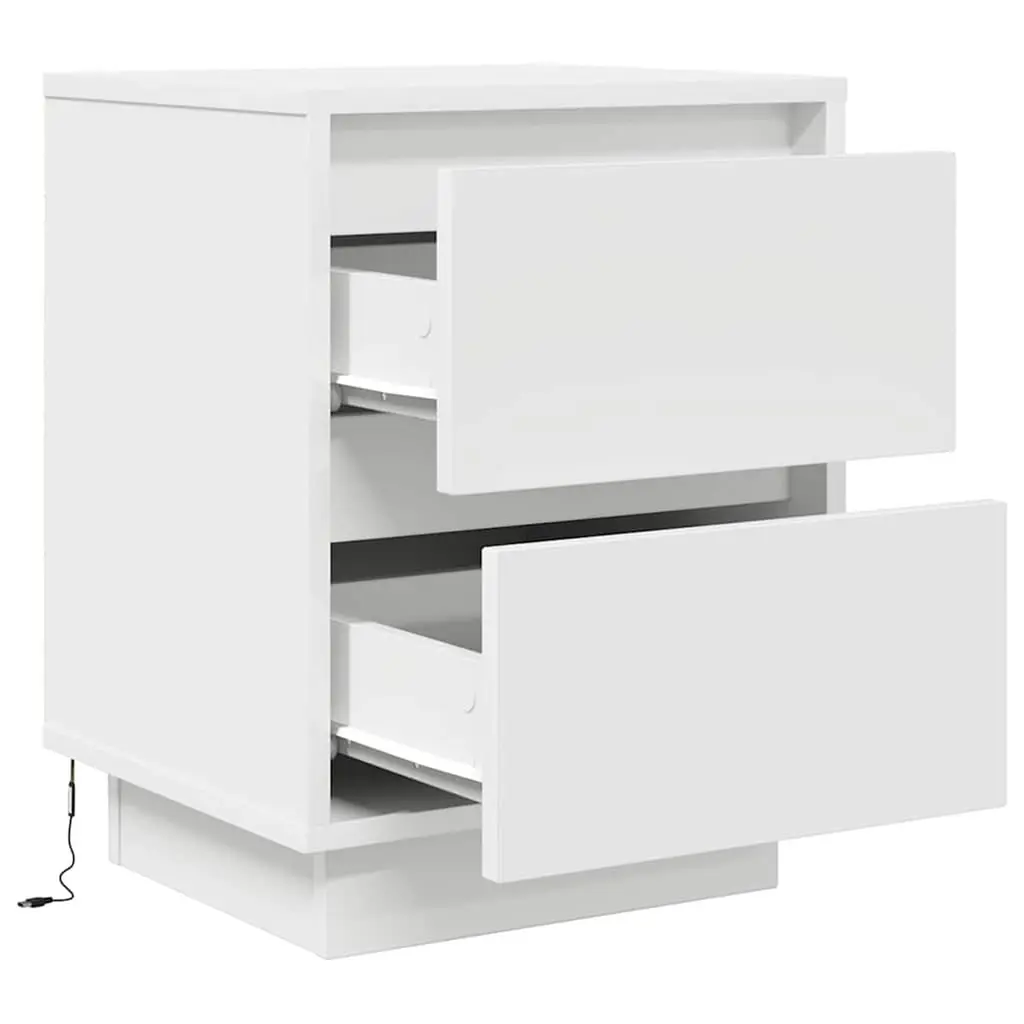 This bedside cabinet set mixes function and modern style, perfect for spicing up your bedroom. The chic white finish and smooth surfaces add a classy touch, fitting right in with different interior styles while giving you vital storage for your nightstand bits. Ample Storage: Built to hold all your bedside essentials, these cabinets have roomy drawers and surfaces for easy access and organization. Built-In Lighting: With customizable LED lights, they light up your space and add a warm, inviting atmosphere. Stylish Design: With a sleek modern style and clean lines, these cabinets look great in any bedroom. Quality Material: Made from high-grade engineered wood, these cabinets are designed to last, giving you a lasting addition to your bedroom furniture. Easy Maintenance: The smooth surfaces make cleaning a breeze, so keeping your furniture looking fresh takes very little effort.