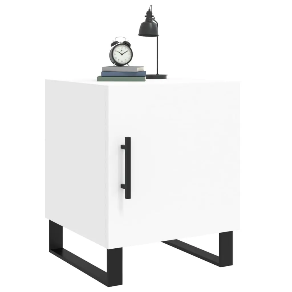Vidaxl Bedside Cabinet Set Of 2 White Engineered Wood, Iron Medium