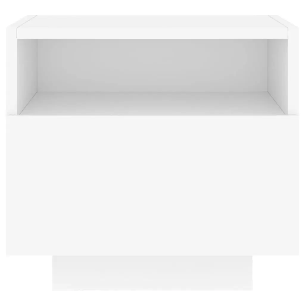 This bedside cabinet set gives your bedroom a modern flair, easily mixing practicality with style. It's perfect for anyone who loves elegance, with each cabinet showing a minimalist design in pure white that screams sophistication while offering essential storage for your personal items and night-time essentials. Features cool multicolor LED lights for a personal touch to your room, making it great for evening reading or soft night-time lighting.Made from smooth engineered wood with a matte finish, this set is sturdy and easy to maintain, promising longevity whilst looking stylish.The large, single drawer lets you keep smaller things like books and personal bits organized, making bedtime smooth.Its compact size means it can fit well in tighter spots, perfect for apartments or smaller bedrooms without skimping on style.Each cabinet is 15.7 in long, 15.4 in wide, and 14.6 in high, giving the perfect height for easy access while you're in bed. The product comes with a USB connector, but you won't find the certified 5V USB power source in the box.