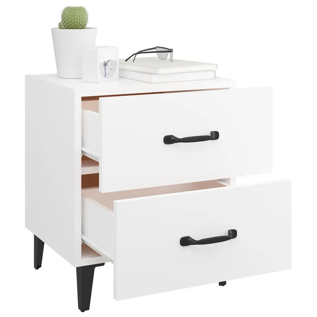 Vidaxl Bedside Cabinet Set Of 2 White Engineered Wood, Metal Standard