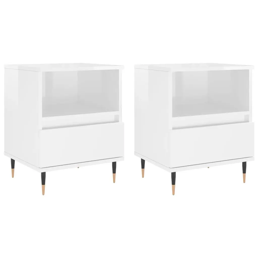 This modern bedside cabinet set is a must-have for any bedroom, blending style and function to hold your nighttime essentials. With its trendy white finish, these cabinets not only provide plenty of storage but also look great with a range of contemporary decor styles, making them ideal for adults wanting to elevate their bedroom vibe. Ample Storage: These bedside cabinets come with two storage spaces to keep your essentials close while looking tidy. The drawers are perfect for hiding things away, giving your room that organized and stylish feel.Sleek Design: Finished in high-gloss white, these cabinets have a modern look that stands out but fits in with different decor styles. They really enhance your bedroom's aesthetic, perfect for those after simplicity with a dash of elegance.Durability: Built from engineered wood, these cabinets are sturdy and long-lasting, plus they're moisture-resistant to keep them looking good for ages. A lovely addition that’s also a wise investment for your home.Easy Assembly: Setting these up is a breeze with just two people and simple instructions. You’ll be enjoying your new furniture in no time.Versatile Use: These cabinets are meant for indoor use, fitting right next to your bed or in other areas like your living room or hallway. Their stylish look works for various uses, from holding bedtime reads to showcasing personal items, boosting the vibe of your home.