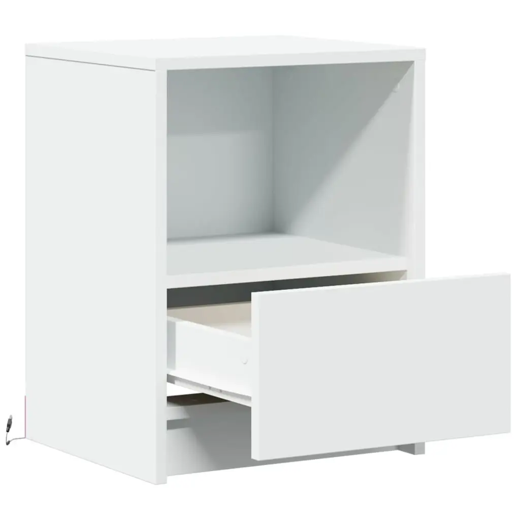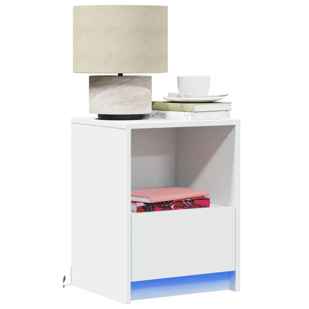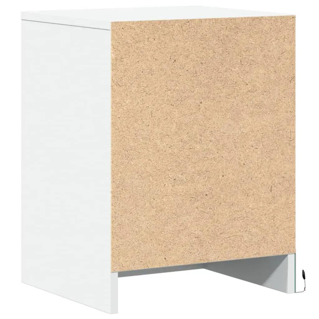 This Modern Bedside Cabinet brings together style and practicality, making it a brilliant addition to your bedroom that fits modern decor. Its sleek white engineered wood design not only looks great but also provides ample storage for your essentials. Multifunctionality: This cabinet doubles as a bedside table and a flexible storage option, making it super handy for small spaces. LED Lighting: Equipped with RGB LED lights, it changes the vibe of your room with soft, relaxing lighting that helps you unwind. Spacious Storage: With a drawer and multiple shelves, this cabinet keeps your stuff organized and within reach for when you need books, personal items, or nighttime essentials. Stylish Design: The modern design in a classic white finish not only matches your bedroom decor but also adds a touch of sophistication to your space. Easy Assembly: Built for quick setup, it only requires basic tools and comes with clear instructions, so you can enjoy your new bedside table hassle-free.