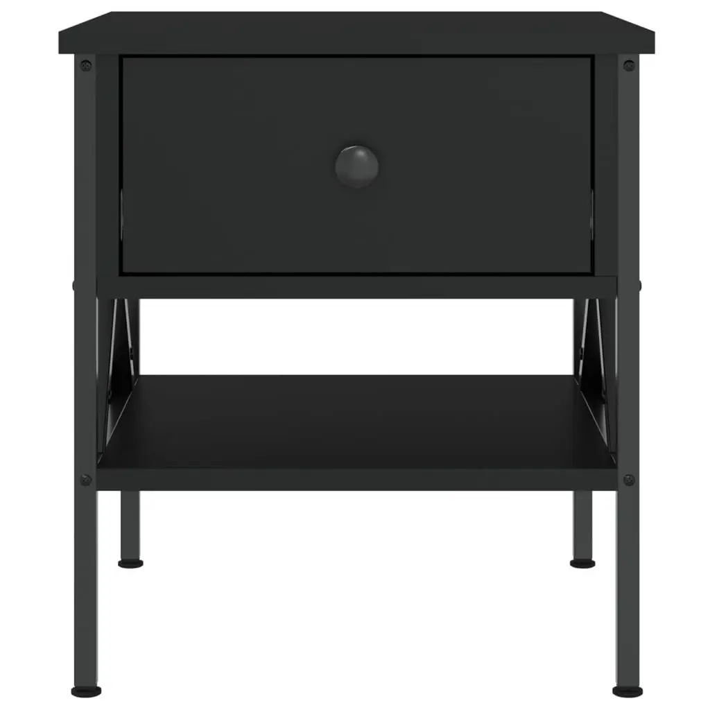 This bedside table gives you a cool mix of industrial vibe and practicality, perfect for modern living areas. With its sleek matte black finish and clean lines, it makes a stylish statement in your bedroom or living room while keeping your must-haves close at hand. Sturdy Iron Frame: Made from tough iron, this bedside table offers a solid base that stands up to daily use. The tough frame ensures it lasts, making it a staple in your space.Generous Storage: With a roomy drawer and an open shelf, this bedside table holds your essentials with ease. Perfect for stashing books, tech, or personal items right within arm's reach.Adjustable Feet: This table has adjustable feet letting you set the height just right so it sits flat on any surface. Super handy for keeping it stable on uneven floors.Stylish Industrial Design: With a look inspired by factory chic, this table not only adds a modern touch but also gives your space some character. Its straightforward yet bold design fits in well with any contemporary style.Versatile Use: Great for bedrooms or living rooms, this bedside table can also serve as an end table or phone stand. Its multifunctional aspect makes it a flexible choice for various settings.