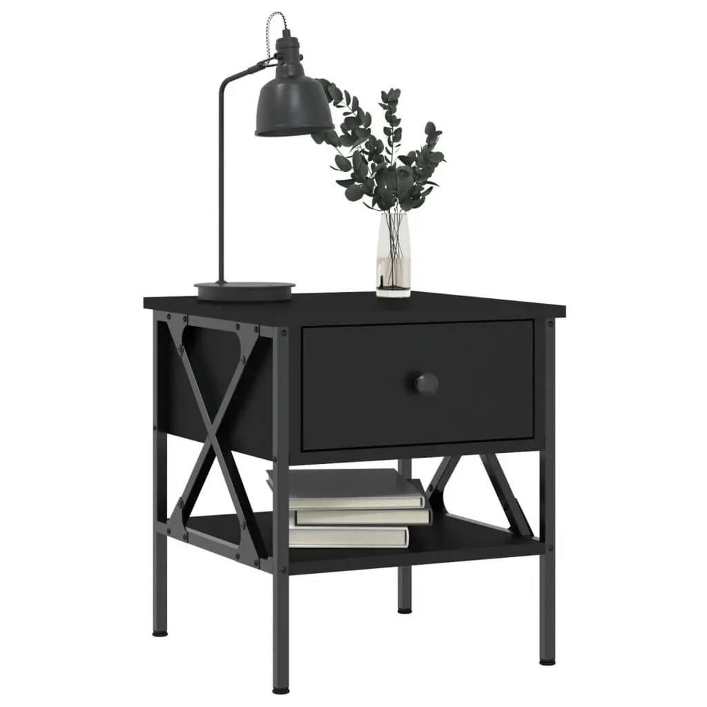 Vidaxl Bedside Table Black Engineered Wood 15.7 In X 16.5 In X 17.7 In