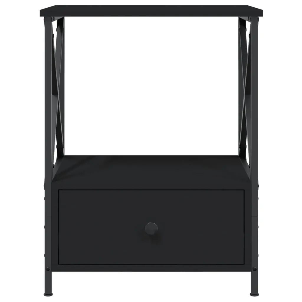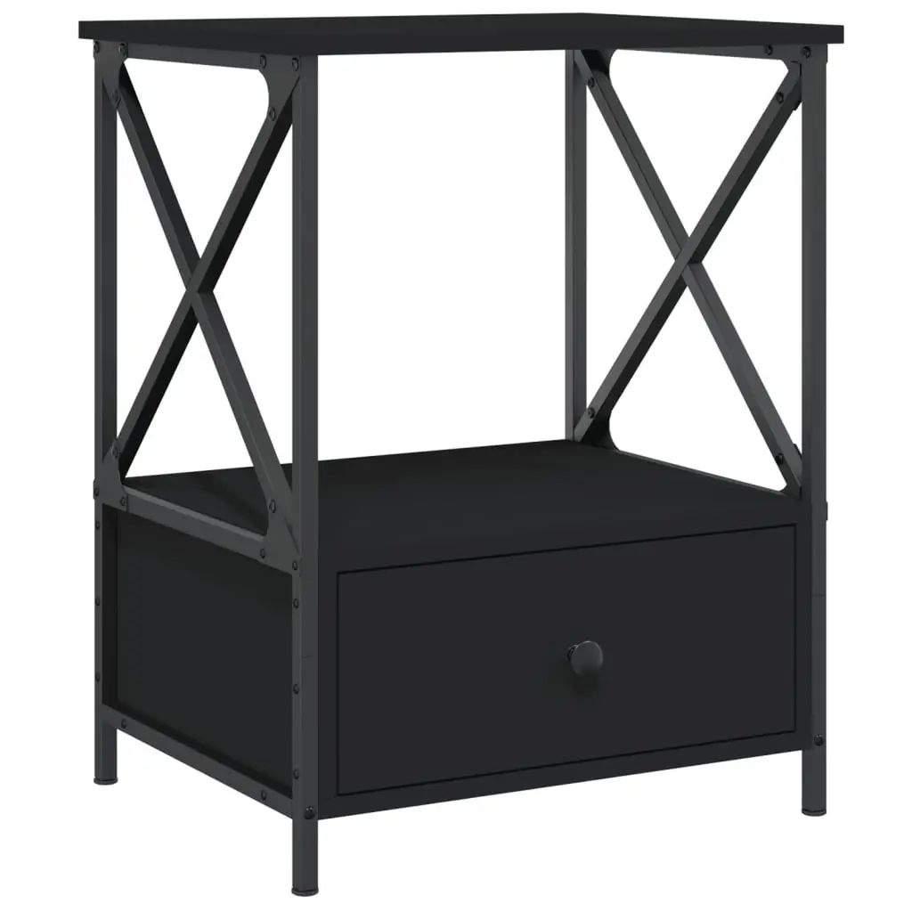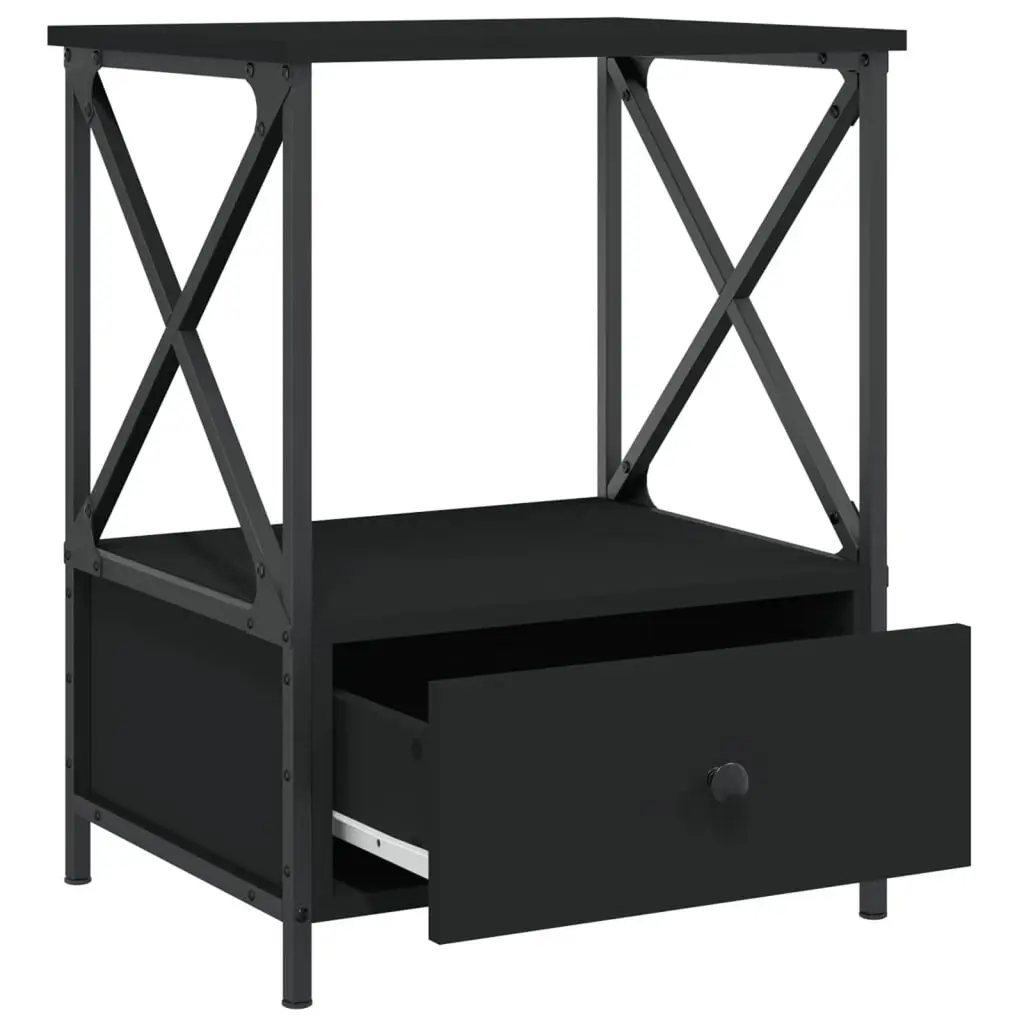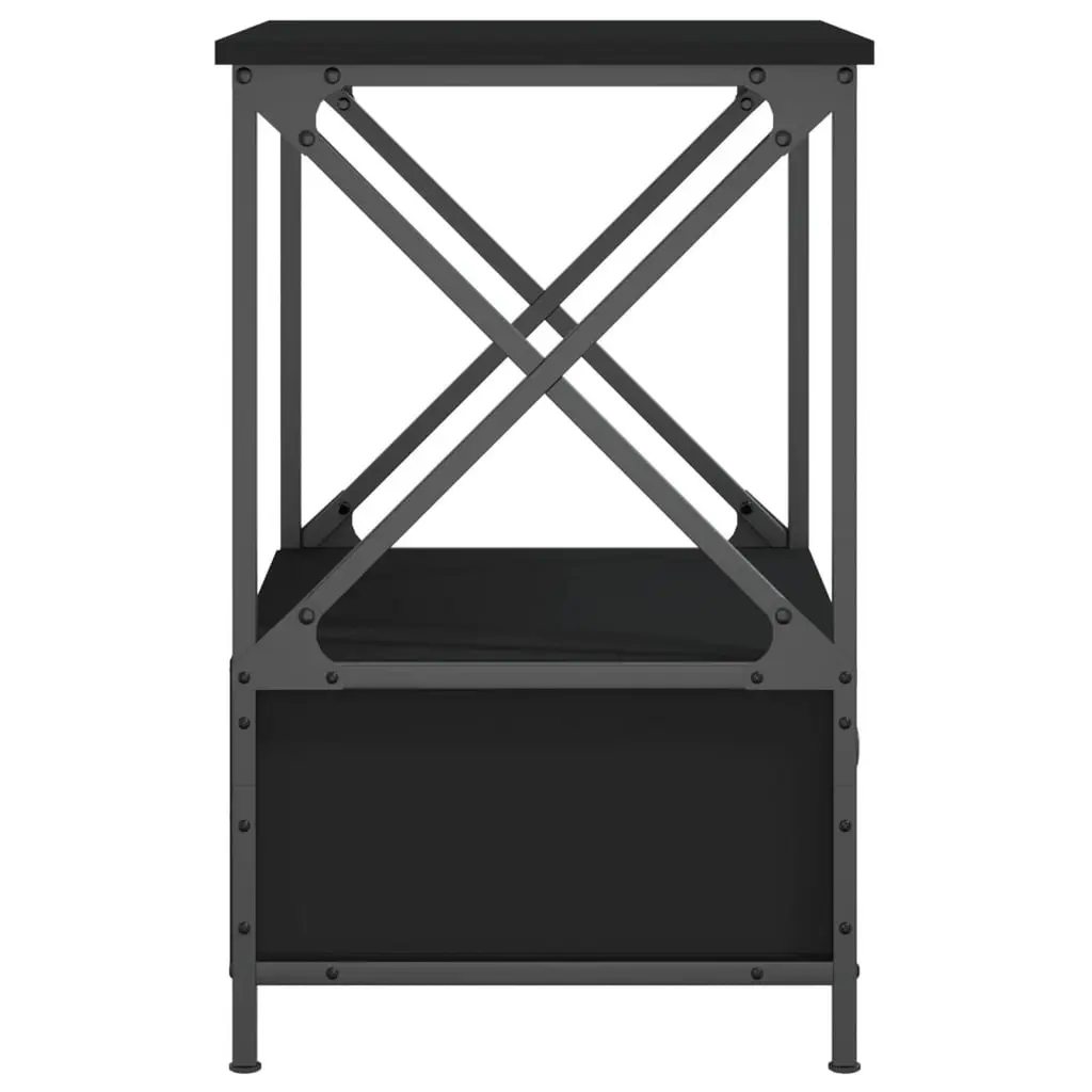 Vidaxl Bedside Table Set Of 2 Black Engineered Wood, Iron Bedside Table