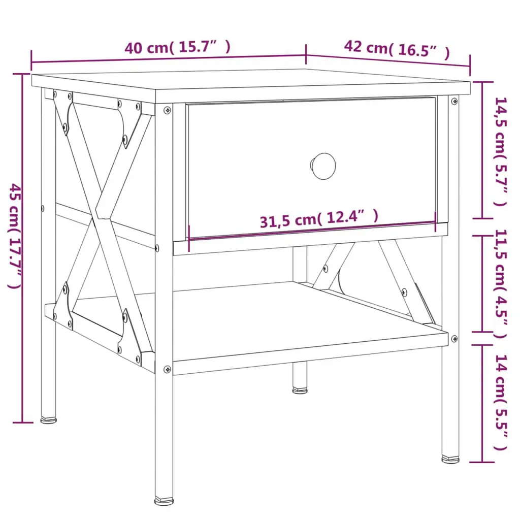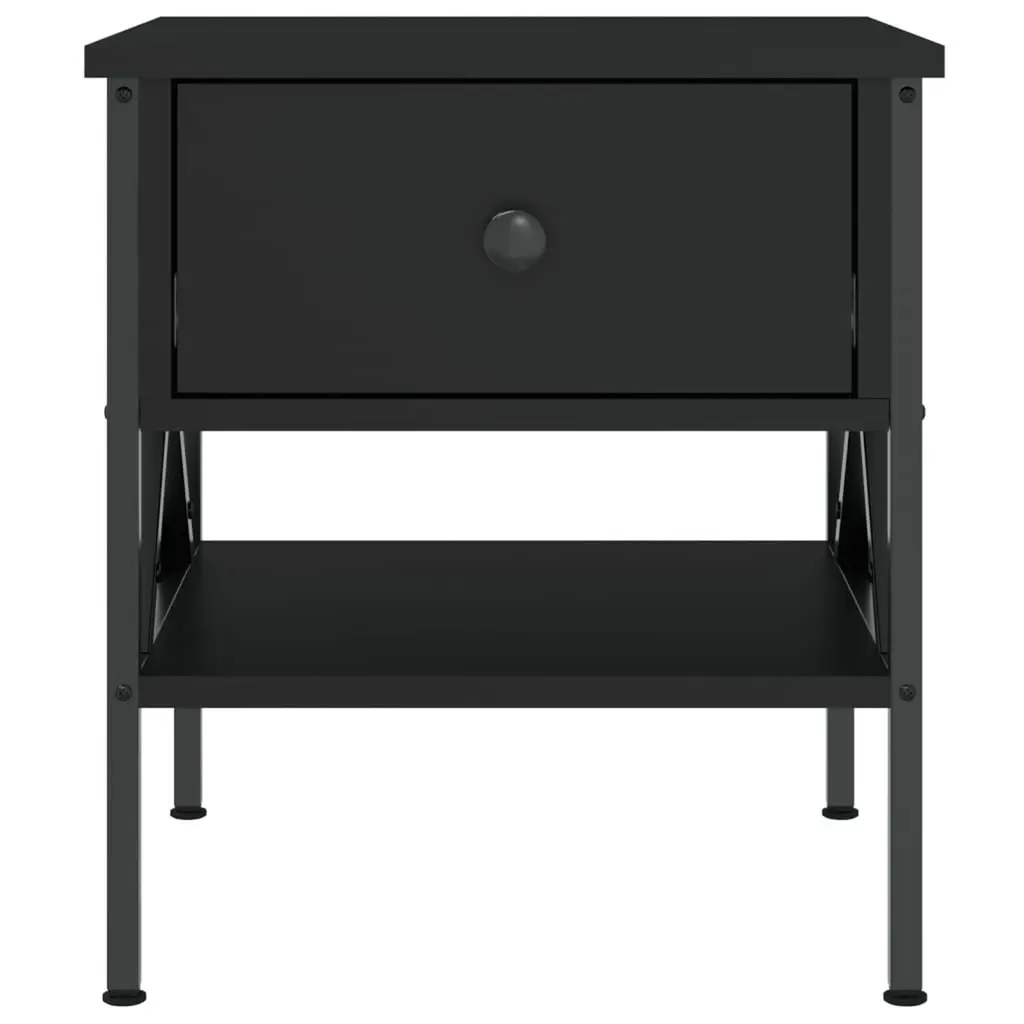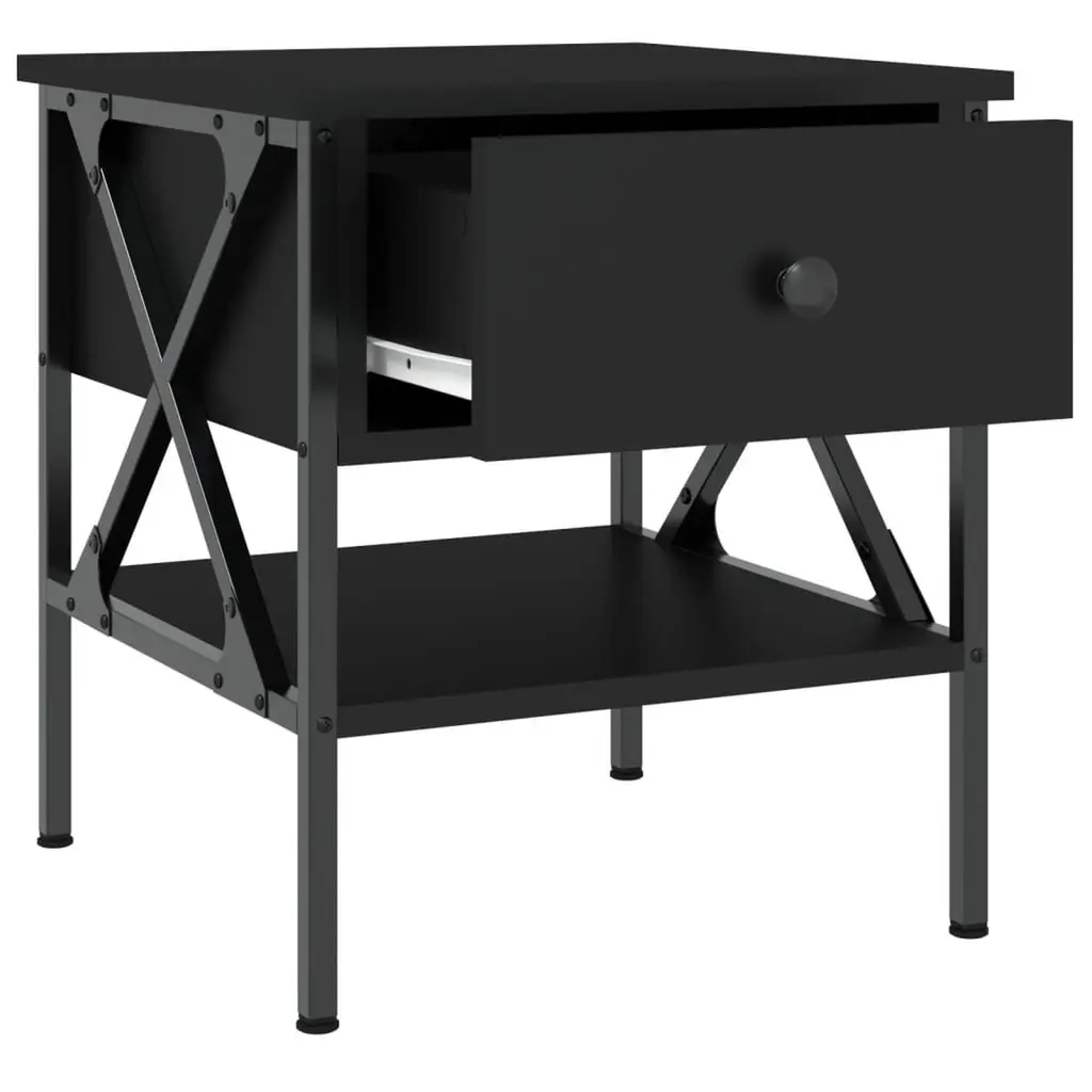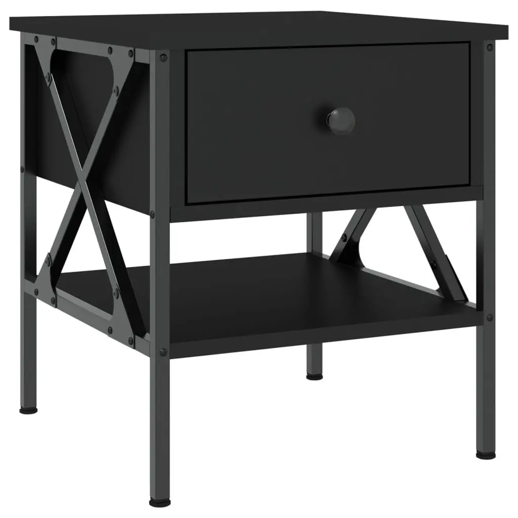 This set of industrial style bedside tables gives you a practical way to store your personal bits next to your bed, and it adds a cool urban touch to your bedroom or living room. With a matte black finish and made from tough engineered wood and iron, they're stylish and built to last, making them perfect for modern decor. Generous Storage: Each bedside table has a useful drawer with loads of space for your essentials like books, glasses, or phone chargers. Having a proper storage spot keeps things tidy and makes sure your nightstand stays clutter-free.Robust Build: The combo of engineered wood and iron gives you a stable, solid structure for everyday use. They can take the daily grind while staying stylish, making them a reliable choice for your home.Stylish Matte Finish: The smooth matte black surface not only looks great but also makes these tables a fab match for various furniture styles and colors. This elegant design lifts any room's vibe, creating a sleek and cohesive look.Multi-Functional Use: While perfect as bedside tables, their trendy design allows them to shine in living rooms, as plant stands, or even as end tables. Their versatility means they fit seamlessly into any space, meeting all sorts of functional needs.Compact Dimensions: With measurements of 16.5 in wide, 15.7 in long, and 17.7 in high, they're the perfect size for smaller spaces, making them a great addition to any bedroom or snug corner without crowding the area.
