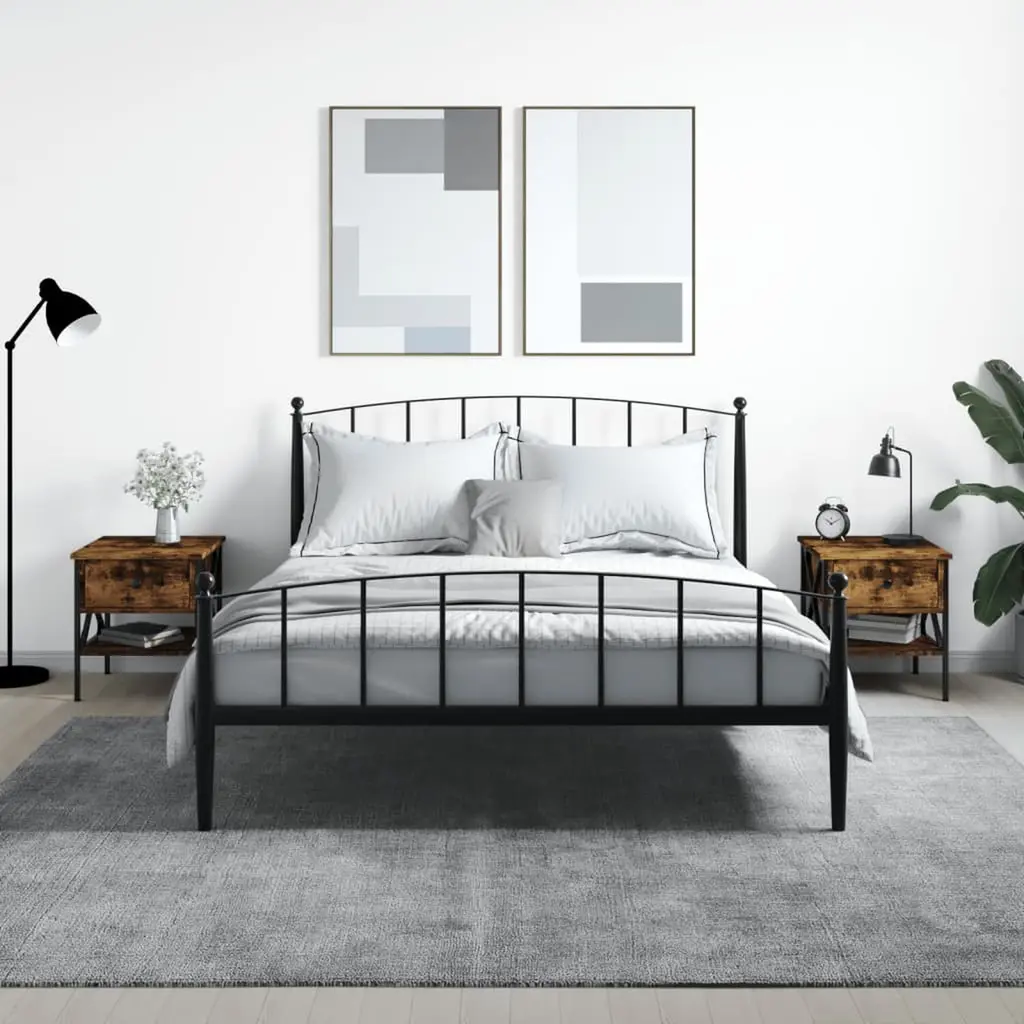Vidaxl Bedside Table Set Of 2 Smoked Oak Engineered Wood, Iron Medium