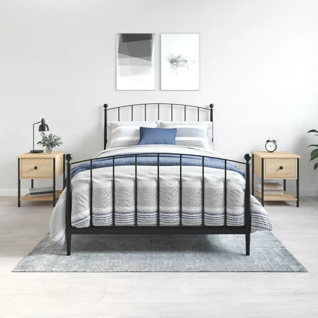 Vidaxl Bedside Table Set Of 2 Sonoma Oak Engineered Wood, Iron Medium