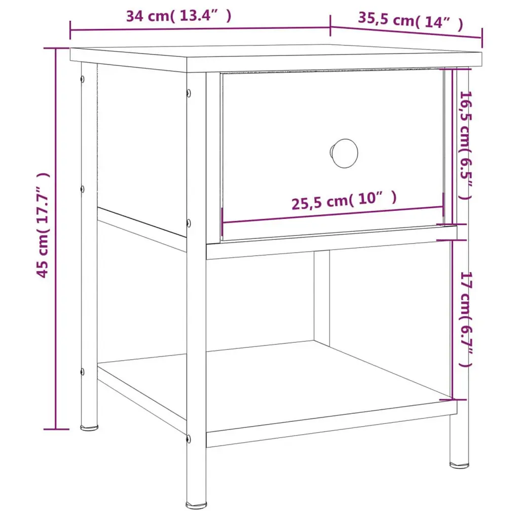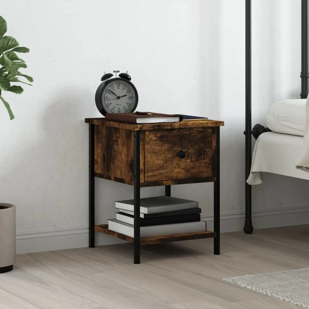 Vidaxl Bedside Table Smoked Oak Engineered Wood, Iron Compact