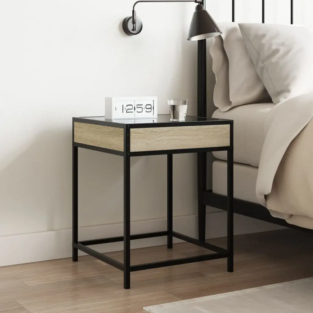 Vidaxl Bedside Table Sonoma Oak Engineered Wood, Glass, Steel Standard
