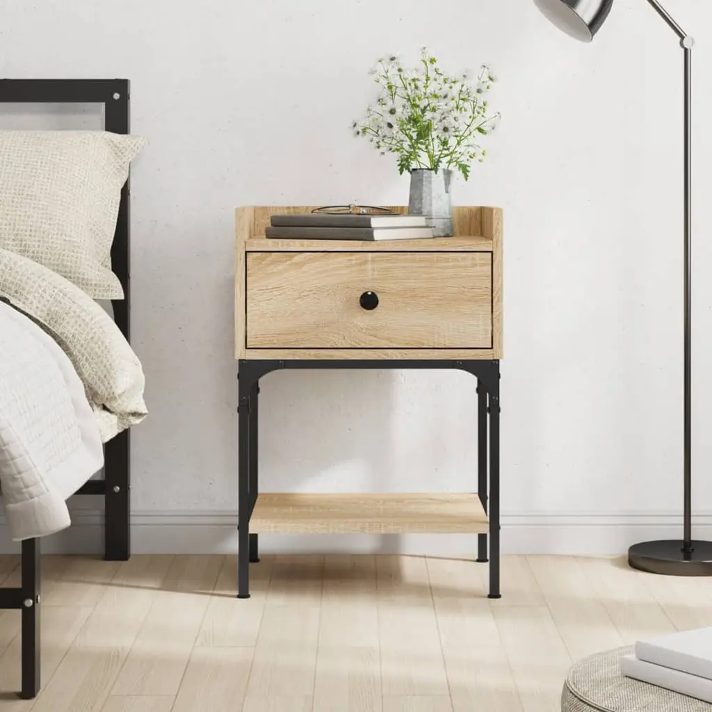 Vidaxl Bedside Table Sonoma Oak Engineered Wood, Iron Medium