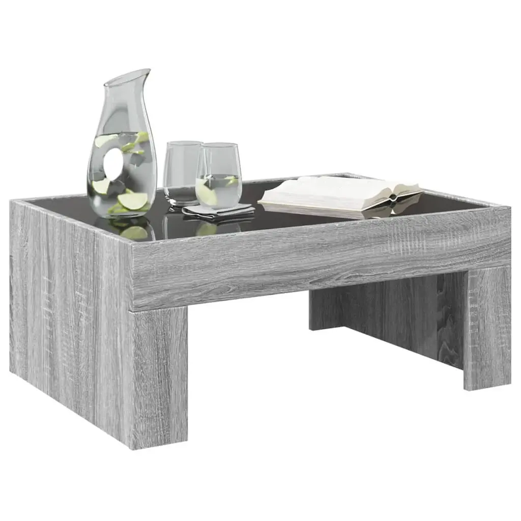 This modern coffee table is the perfect mix of style and function, making it a must-have for any contemporary living area. At 27.6 in long, 19.7 in wide, and 11.8 in high, it’s got plenty of space for drinks, books, and decorative bits, while the stunning grey sonoma finish brings a touch of class. Use it as a coffee table in a cozy living room or as a chic accent piece in the bedroom, drawing attention with its sleek lines and smooth feel. The built-in LED lights make it even better, offering a warm glow to help you relax and have good chats. Built-In Lighting: The integrated LED lighting transforms ordinary gatherings into extraordinary experiences, illuminating your living space with a warm and dynamic glow. This feature not only adds a modern touch but also enhances the vibe of any occasion, whether it’s a casual coffee break or an evening get-together with friends. Contemporary Design: With its clean lines and minimalistic approach, this coffee table represents modern design principles, ensuring it blends effortlessly into various home aesthetics. Whether paired with vibrant sofas or neutral décor, this table enhances your interior without overwhelming it. Durable Materials: Constructed from engineered wood and a sleek glass surface, this coffee table promises both durability and elegance. Its sturdy build can support up to 66.1 lb, making it perfect for everyday use without compromising on style. Versatile Use: This piece is not just a coffee table; it's a multifunctional furniture solution suitable for different settings. Use it in your living room for coffee service or as a bedside table in your bedroom to display decorative items and essentials. Dynamic Lighting Control: The remote-controlled LED lights add convenience and adaptability to your home décor, allowing you to adjust the ambiance to fit your mood or occasion effortlessly.