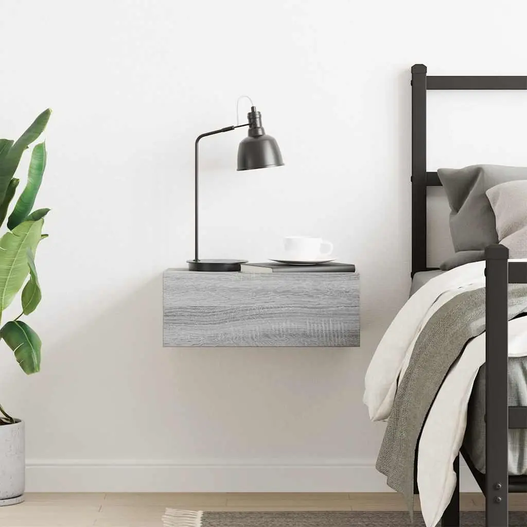Vidaxl Floating Nightstand Grey Sonoma Engineered Wood Small