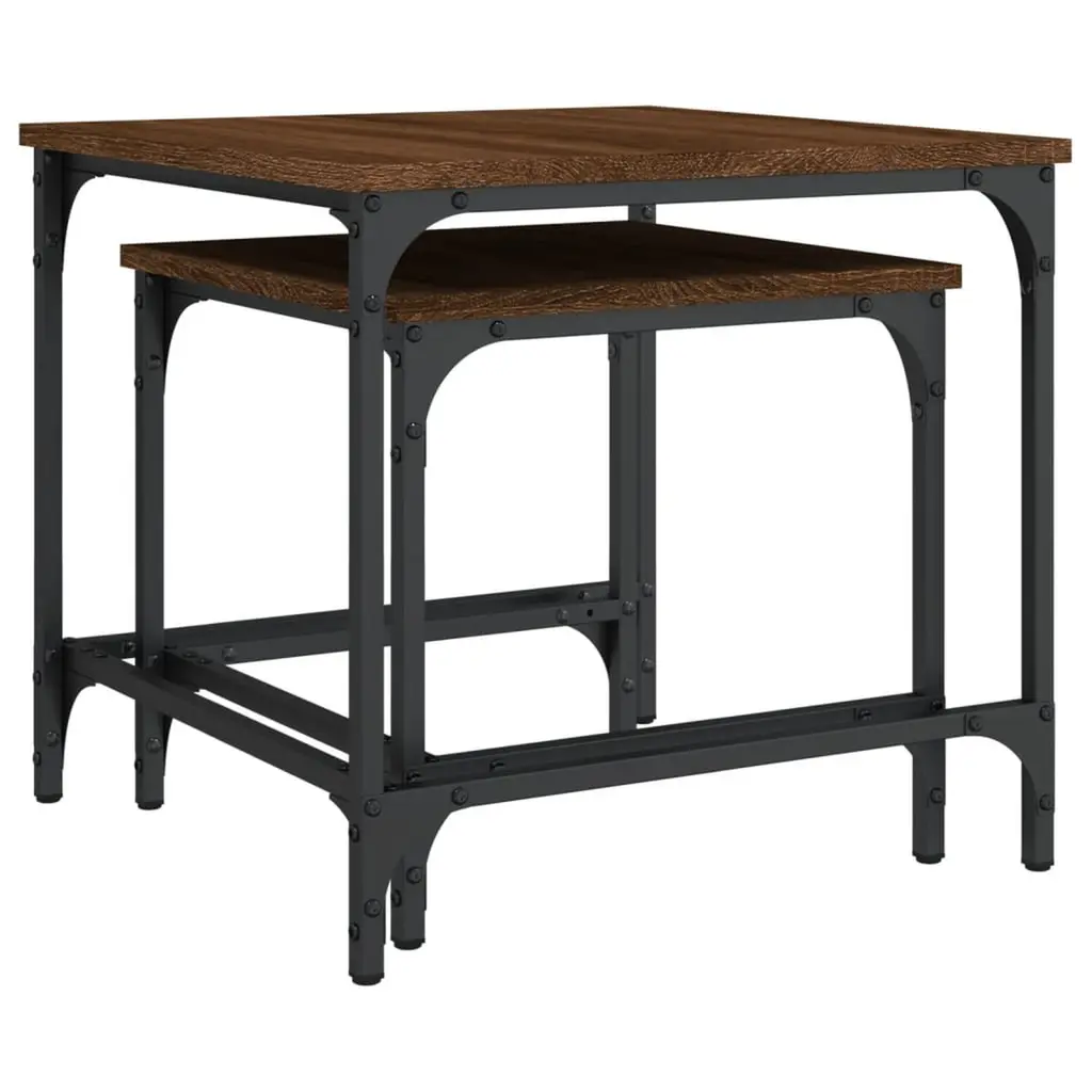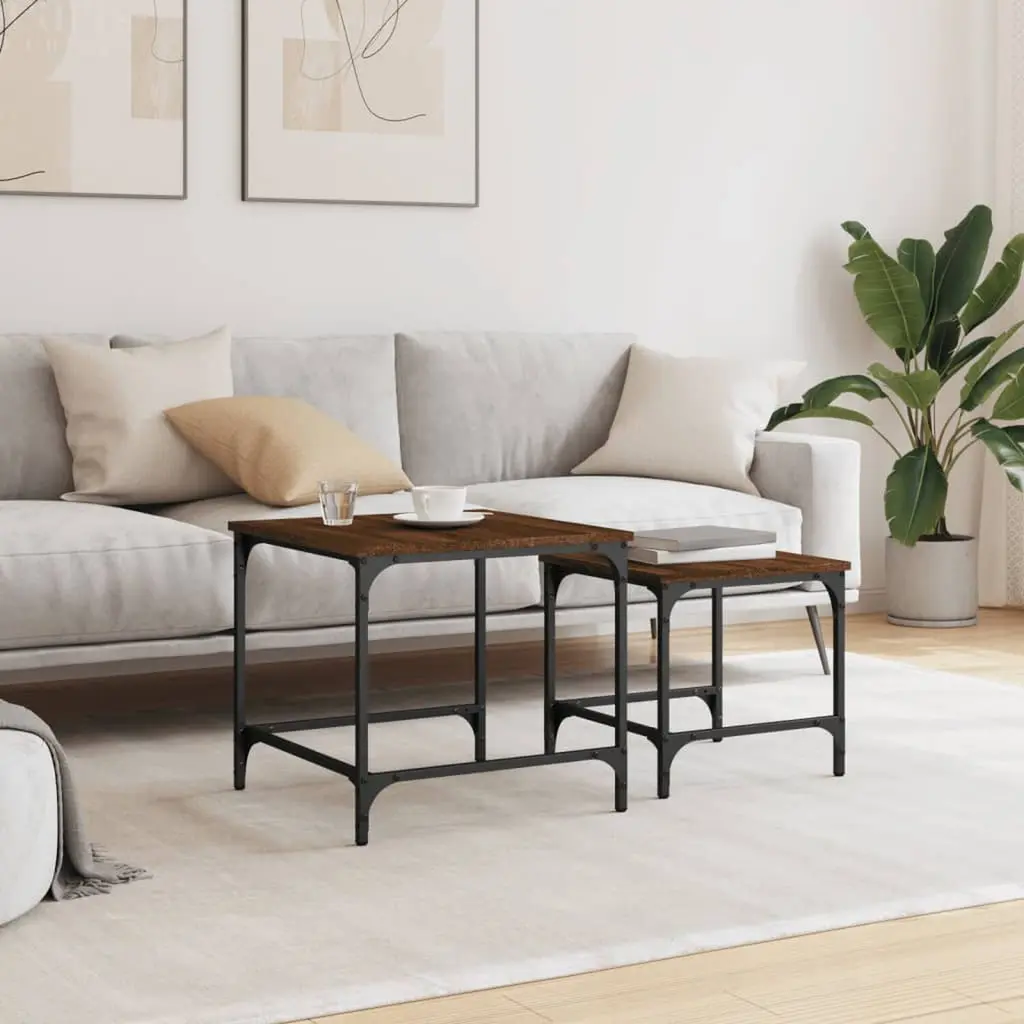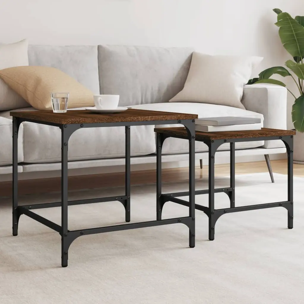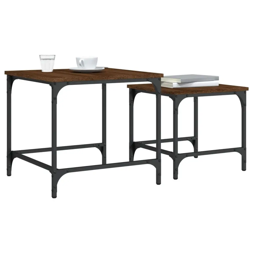 Vidaxl Nesting Coffee Table Set Of 2 Brown Oak Engineered Wood, Metal