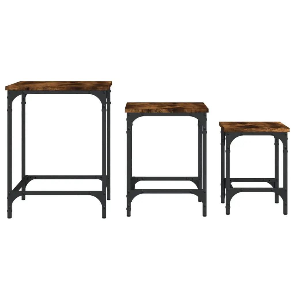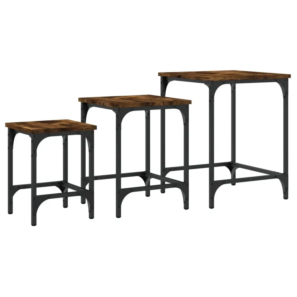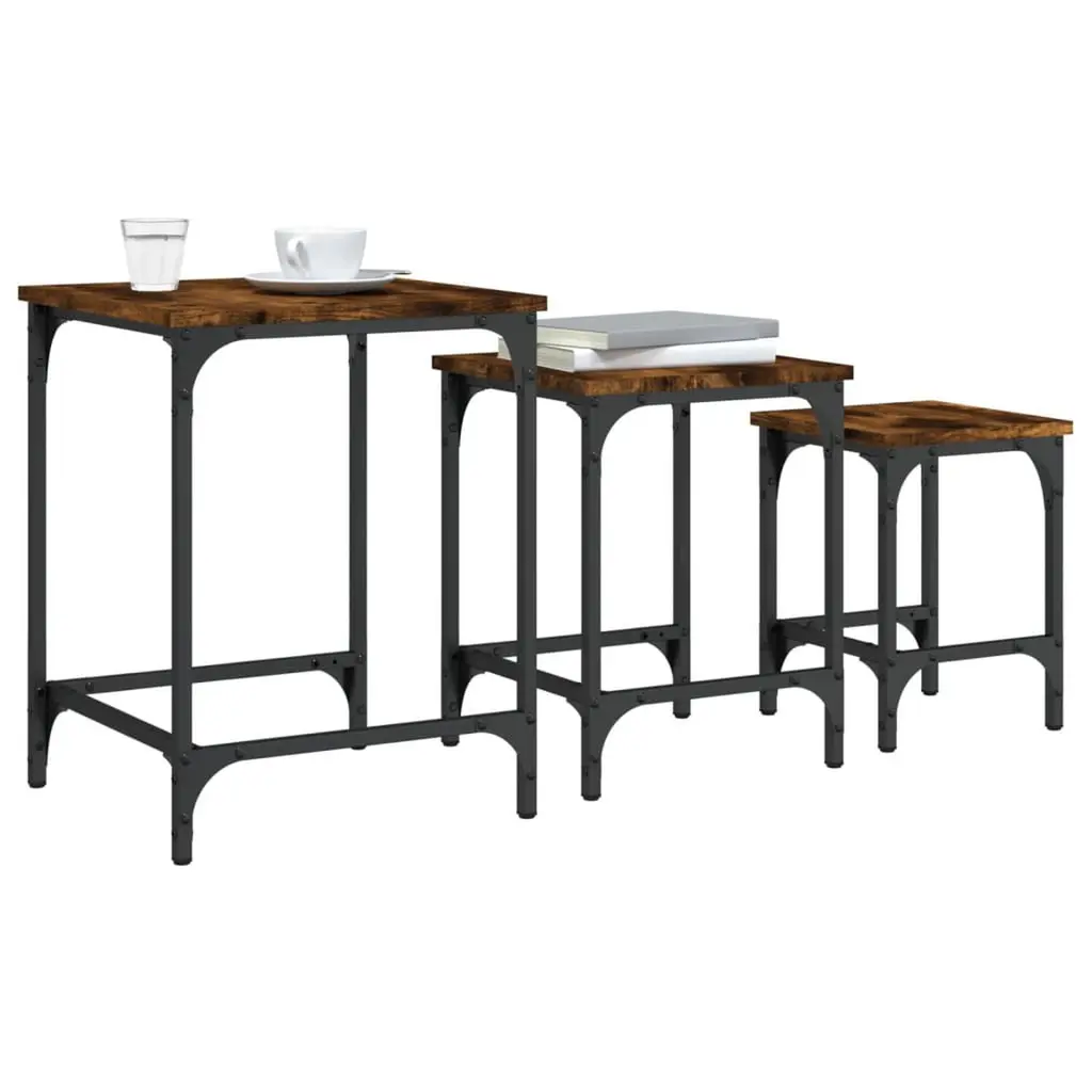 Vidaxl Nesting Coffee Table Set Of 3 Smoked Oak Engineered Wood, Metal