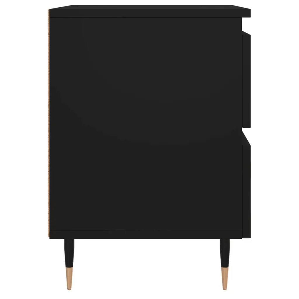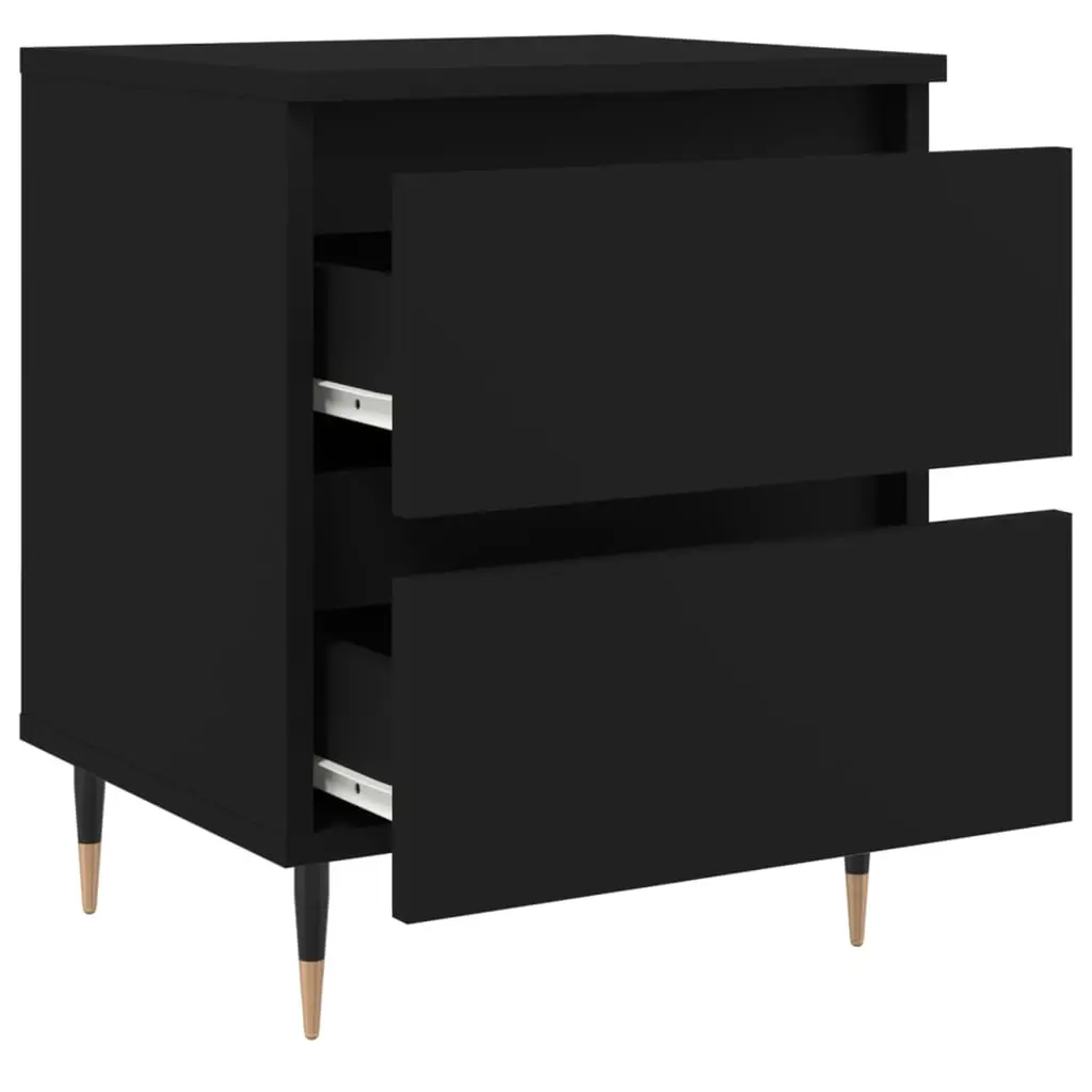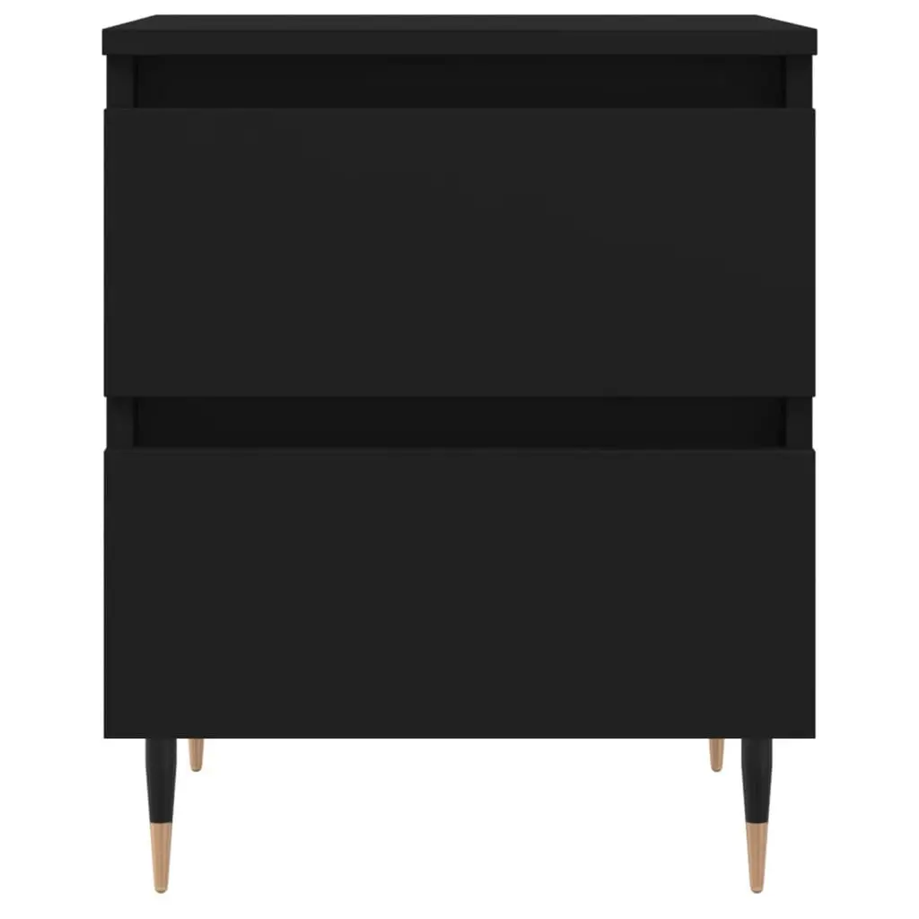 This set of contemporary nightstands features a sleek design that fits seamlessly into any room. Made from high-quality engineered wood, these cabinets showcase a stylish matte black finish that not only looks great but also promises durability and long-term use in any living or bedroom space. Ample Storage: Each cabinet comes with two standard drawers measuring 13.8 in wide, 15.7 in long, and 6.3 in high, giving you plenty of room for bedtime essentials like books, glasses, or gadgets, keeping your space tidy. Durable Design: Made from solid engineered wood and propped up by tough iron legs, these cabinets are reliable and stable, perfect for everyday use, even in busy areas of the house. Stylish Aesthetic: The smooth, matte finish and smart tapered legs add a bit of flair, matching current design and elevating your decor. Versatile Placement: Great for all kinds of settings, these cabinets can work as stylish nightstands next to your bed or accent tables in the living room. Their modern shape fits into a variety of decor styles, ensuring they're not just functional but also attractive. Easy Assembly: Each set comes with straightforward assembly instructions and all the bits you need, making it quick for anyone to enjoy their new furniture.