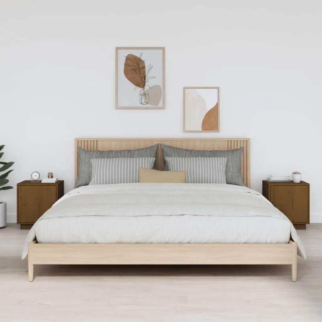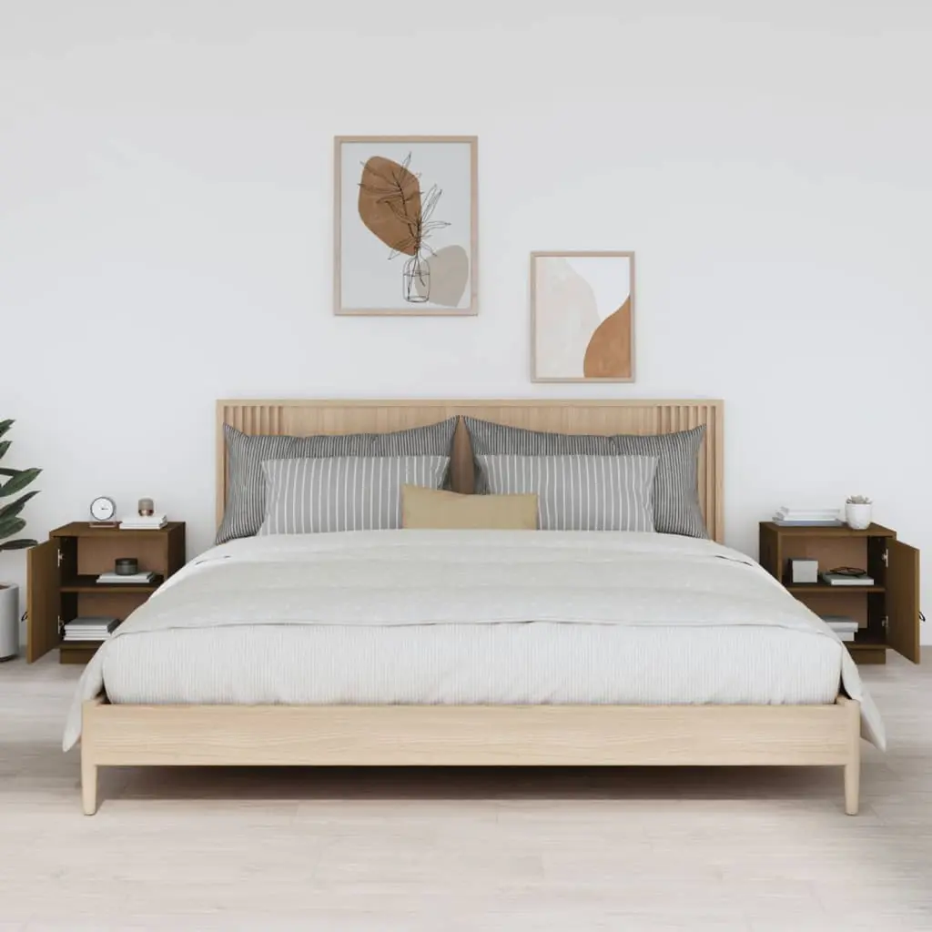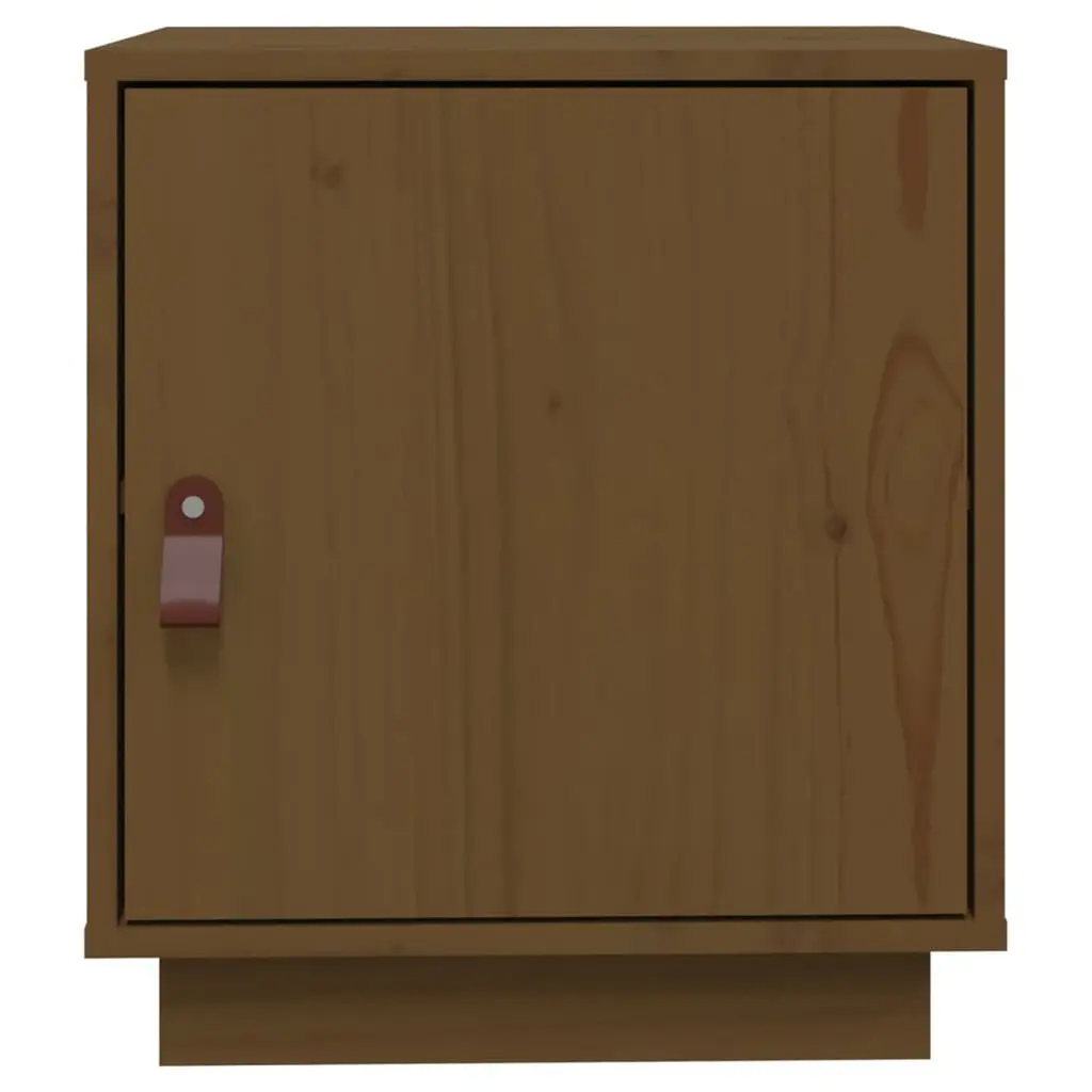 Vidaxl Nightstand Set Of 2 Honey Brown Solid Pine Wood, Faux Leather