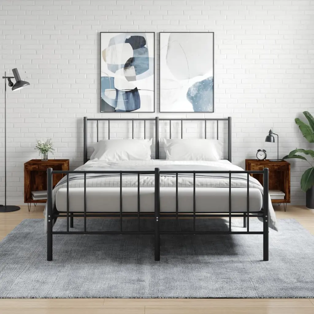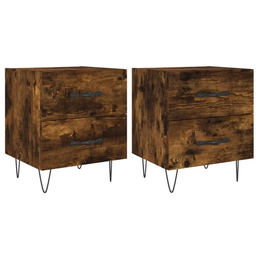Vidaxl Nightstand Set Of 2 Smoked Oak Engineered Wood And Metal Compact