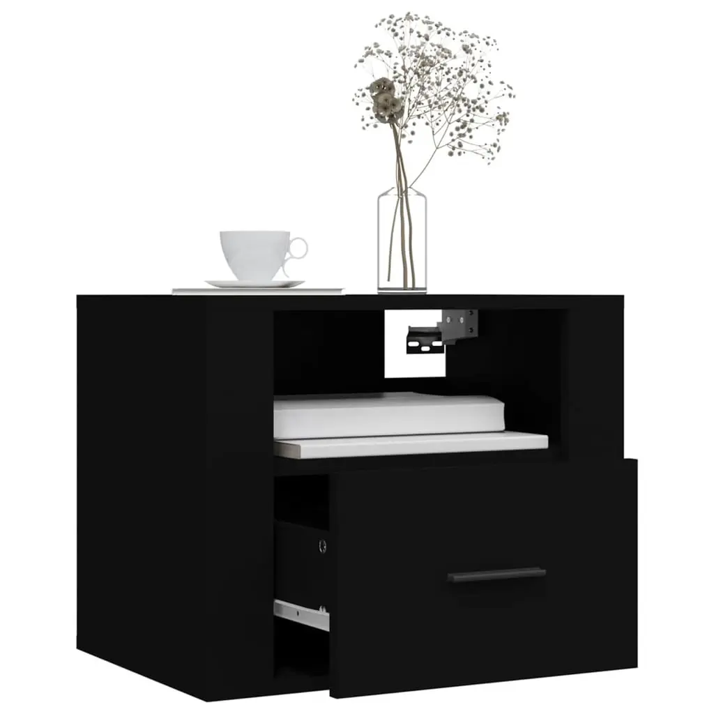 Vidaxl Wall-Mounted Bedside Cabinet Black Engineered Wood Standard