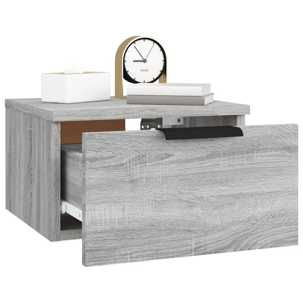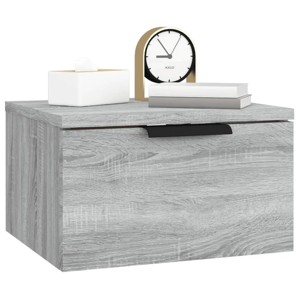 This wall-mounted bedside cabinet is a fantastic addition to any bedroom, blending functionality with modern style. Made from quality engineered wood, it features a sleek Grey Sonoma finish that goes well with various decor styles, from minimalist to contemporary. Its compact size is perfect for tight spaces, while offering a good amount of storage for your bedside essentials, keeping everything neat and organized. Ample Storage: The wall-mounted design makes the most of your space, allowing easy access while keeping your items neatly stored away. With a smooth surface, you can easily place your nighttime items, improving your bedtime routine.Sturdy Construction: Built from engineered wood, this cabinet is strong and durable, able to hold up to 132.3 lbs. This toughness means it'll stand up to everyday use, making it a practical choice for any home.Modern Look: The stylish Grey Sonoma finish and matte texture add a trendy touch to your bedroom's vibe. It’s not just functional, it also looks great.Wall-Mounted Convenience: By mounting it on the wall, you free up floor space, creating a cleaner and airier room. This is super handy in smaller bedrooms or living areas.Easy Assembly: This cabinet comes with a detailed manual for easy setup. With just a screwdriver, you’ll have it up in no time.