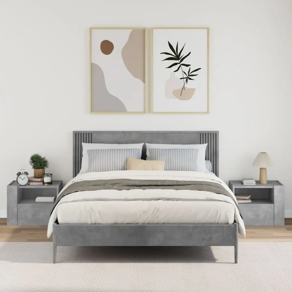 Vidaxl Wall-Mounted Bedside Cabinet Set Of 2 Concrete Gray Engineered Wood