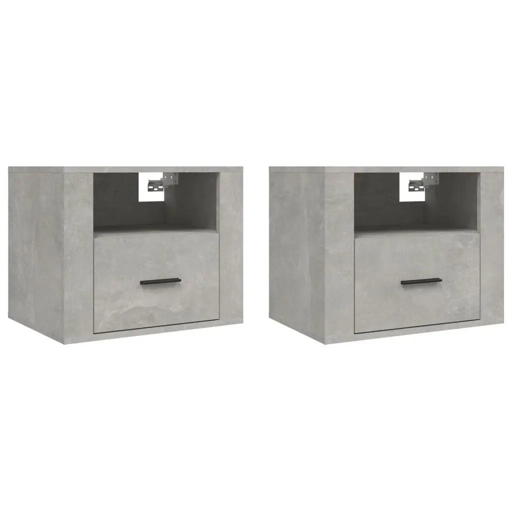 Vidaxl Wall-Mounted Bedside Cabinet Set Of 2 Concrete Grey Engineered Wood
