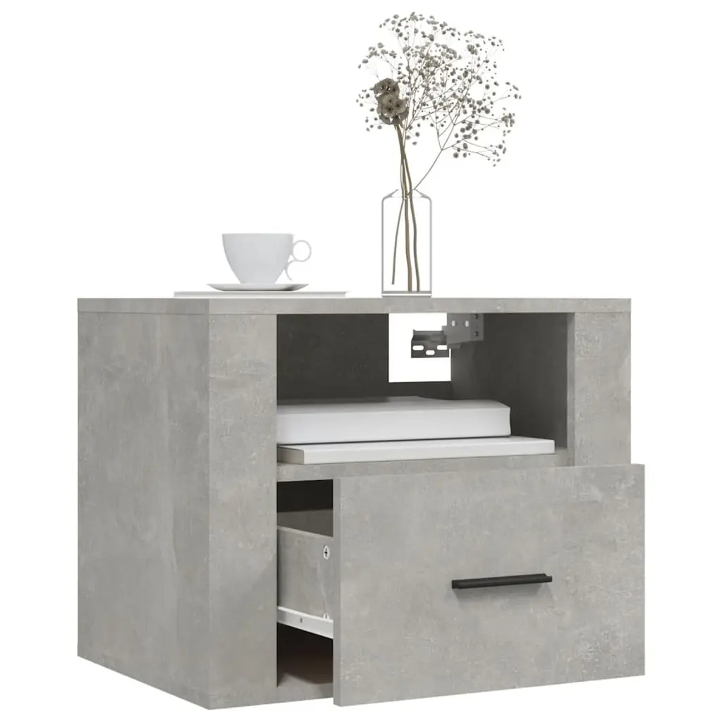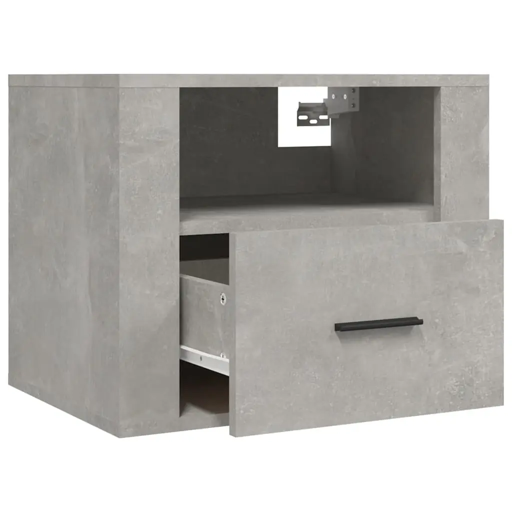 This wall-mounted bedside cabinet is a sleek and modern solution for keeping your bedroom organized. With a contemporary look, its concrete grey finish mixes functionality with style, making it a great addition for anyone wanting to save space while keeping essentials close. Modern Aesthetic: The cabinet's sleek design enhances bedroom decor while making the most of available space, a stylish pick for all sorts of interiors.Easy Access Storage: With a roomy drawer, this unit lets you grab your books, chargers or personal treasures quickly, so your essentials are always on hand.Simple Installation: Wall-mounted for straightforward setup and stability, this bedside cabinet keeps floor space clear and fits any room size.Versatile Functionality: Perfect for a variety of settings, from snug flats to larger homes, it works as a handy nightstand for anyone keen on efficiency.Durability & Care: Built from engineered wood, this cabinet is easy to maintain and strong enough to handle daily life, making it a reliable fixture in your bedroom.