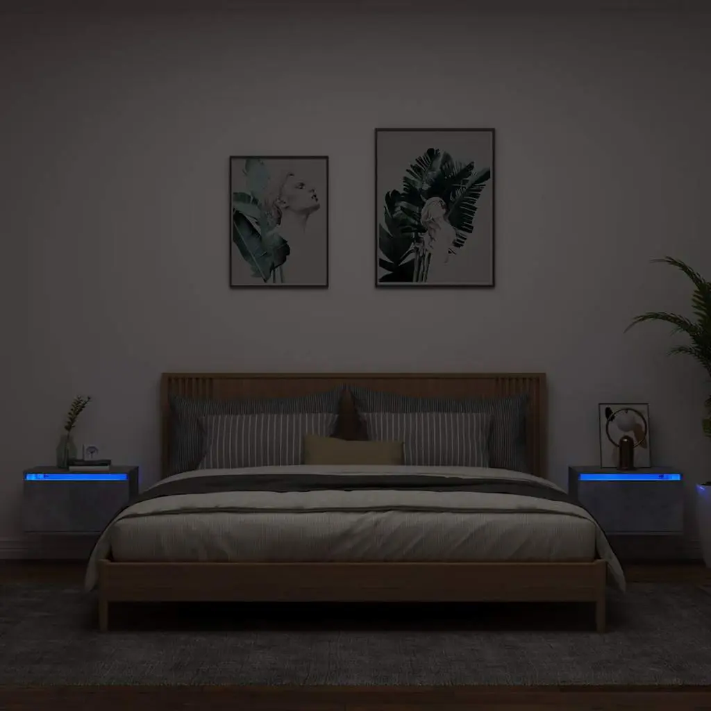 Vidaxl Wall-Mounted Bedside Cabinet Set Of 2 Concrete Grey Engineered Wood