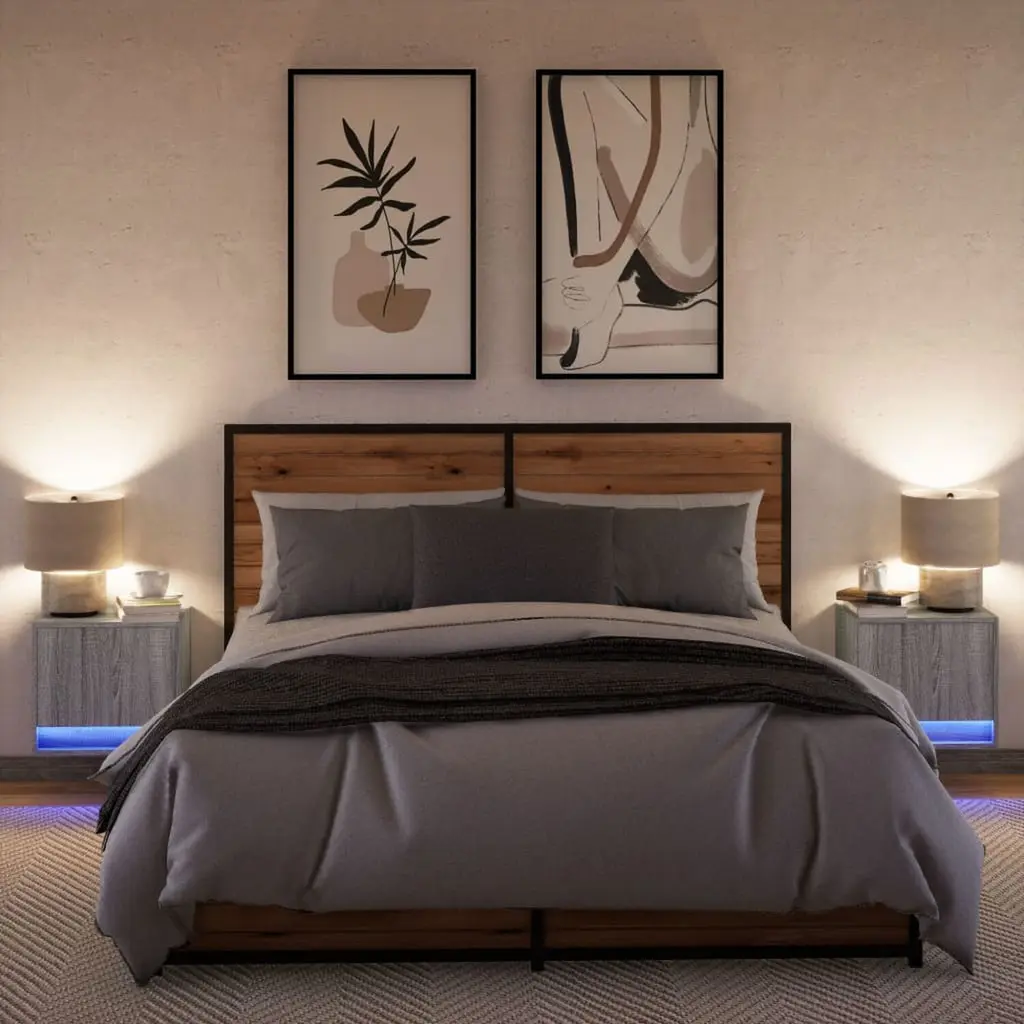 This modern wall-mounted bedside cabinet set mixes style with practicality, giving you a sleek solution for your bedroom storage needs. Made from engineered wood in a striking gray sonoma hue, these cabinets not only save space but also blend nicely with modern decor while providing essential storage for your nighttime essentials. Enjoy the warmth and convenience of built-in RGB LED lighting that sets the mood in your bedroom. Our cabinets provide loads of storage with two spacious drawers to easily organize and stash your bedside essentials like books and glasses. Being wall-mounted, these cabinets free up valuable floor space, making them a top choice for compact areas or minimalist designs. The chic gray sonoma finish gives a modern touch, smoothly fitting into various styles while maintaining a sleek texture. Sold as a set of two, these cabinets blend practicality with a stylish look that’s inspired by the latest design trends.